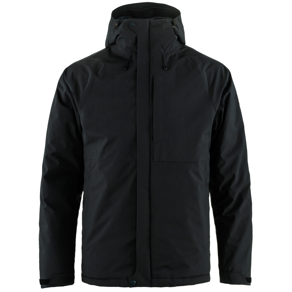 Jachetă izolată pentru bărbați de la Fjällräven, care are glugă reglabilă și mâneci modelate. Fixare cu crampoane la mâneci și cordon de strângere la tiv. Oferă un confort termic deosebit.