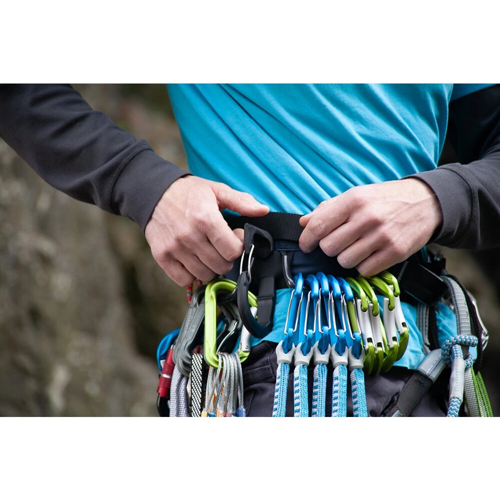 Mâner auxiliar, conceput pentru atașarea diferitelor echipamente la rucsac, scaun etc. Nu este un carabinier de alpinism și, ca atare, nu trebuie utilizat pentru fixarea persoanelor etc.