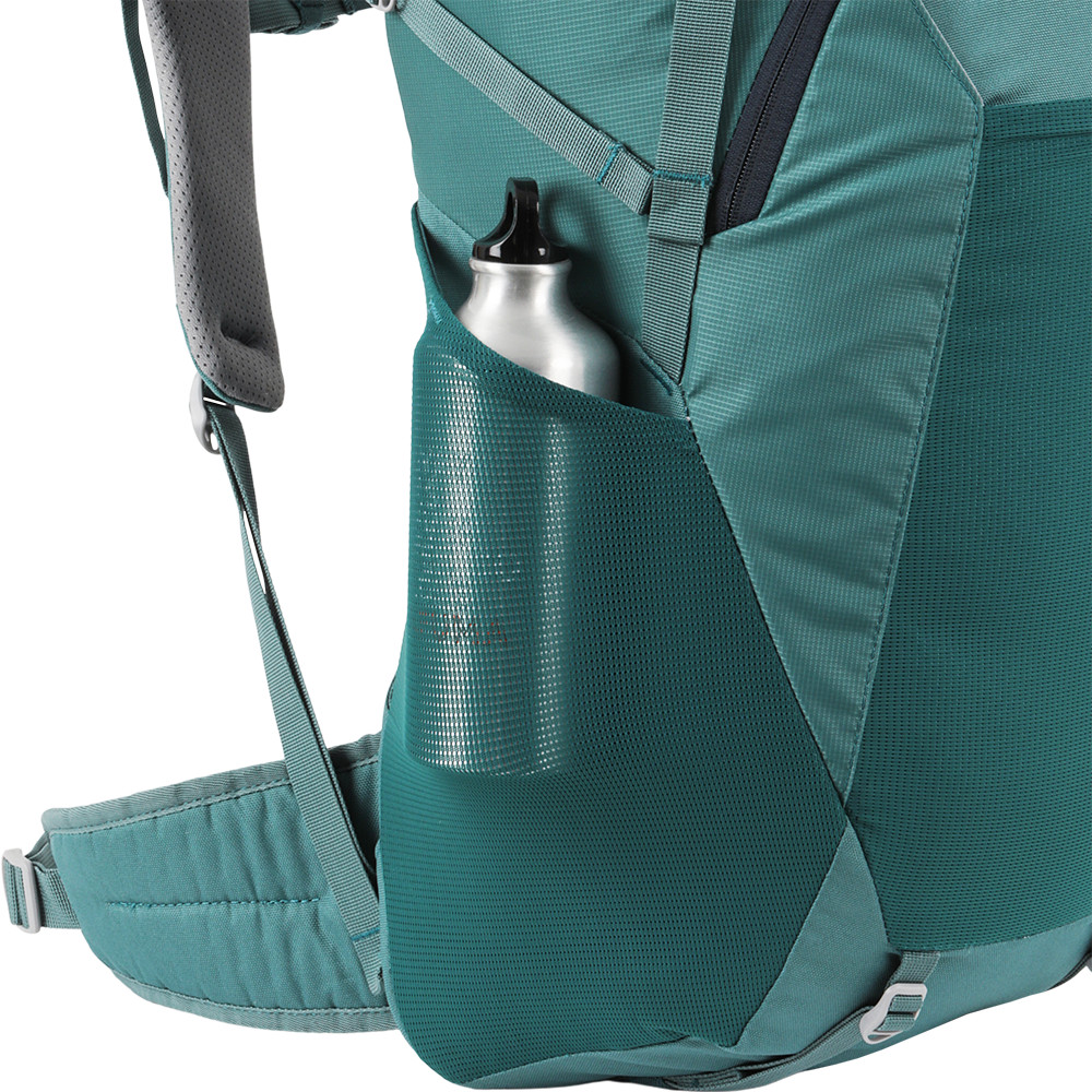 Rucsac ușor pentru drumeții cu buzunar principal cu acces frontal și capac rulant superior. Are buzunare din plasă pe curelele de umăr și o centură detașabilă. Compatibil cu hidrovac, posibilitate de a atașa bețe.