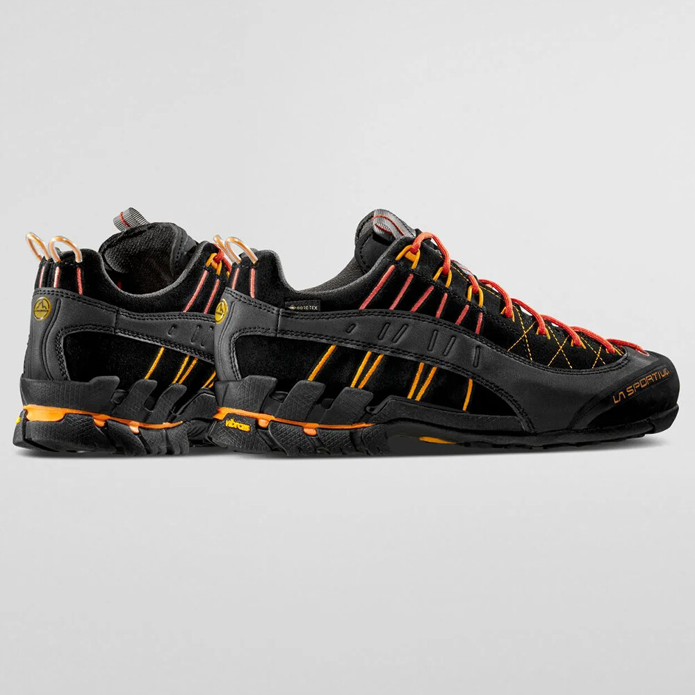 Cizme tehnice cu talpă cu aderență ridicată și șiret extins pe care vă puteți baza cu adevărat atunci când mergeți pe teren stâncos (Via Ferata, acces sub terenul de alpinism). Partea superioară din piele garantează o rezistență ridicată la abraziune și la pătrunderea umidității din exterior. Rezistența la apă este îmbunătățită prin utilizarea unei membrane GORE-TEX®, care asigură, de asemenea, un confort termic optim în interiorul pantofului. În plus, datorită tăieturii ergonomice sofisticate, pantofii Hyper GTX se potrivesc perfect pe picior... astfel încât să nu-i mai puteți da jos.