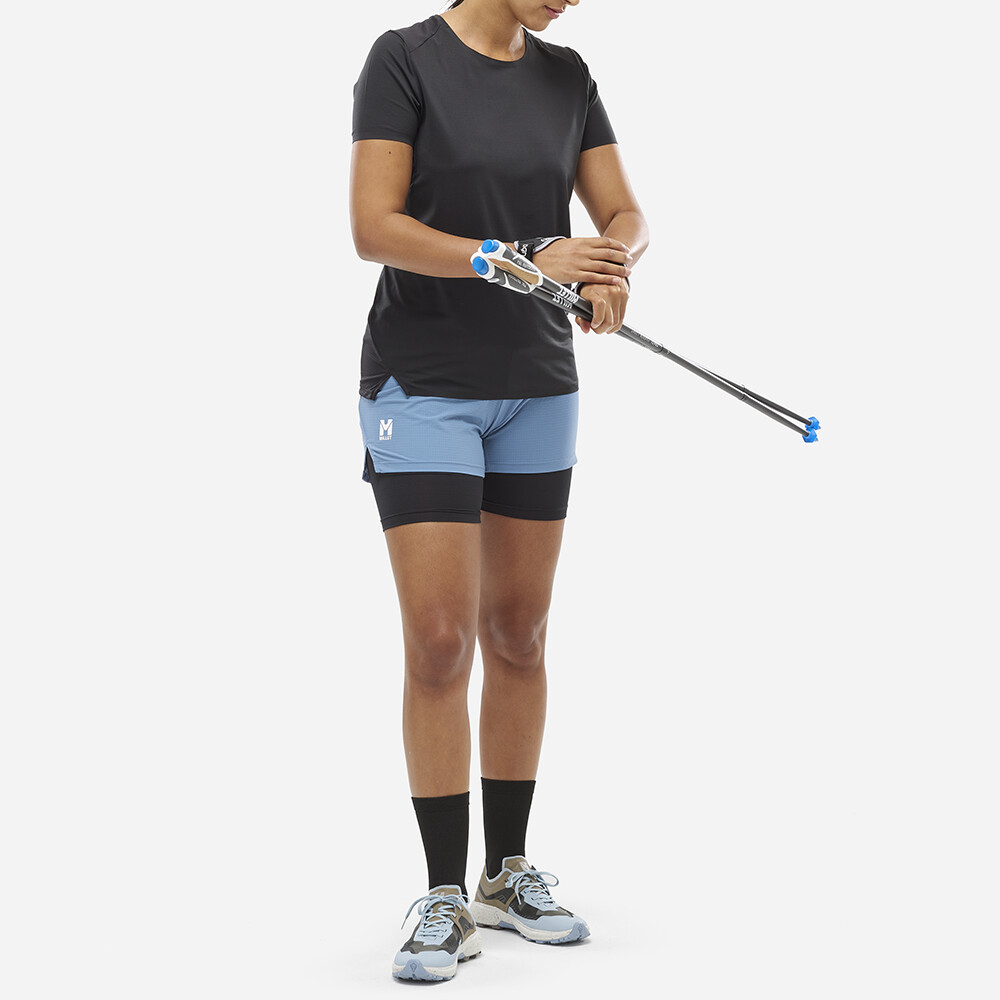 Pantalonii scurți Intense 2in1 pentru femei de la compania franceză Millet vă oferă suport confortabil în timpul alergării.