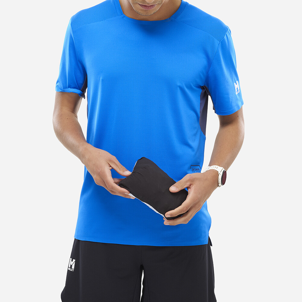 Jacheta bărbătească ultra-ușoară Intense Pro 2.5L de la compania franceză Millet oferă protecția perfectă pentru trail running.