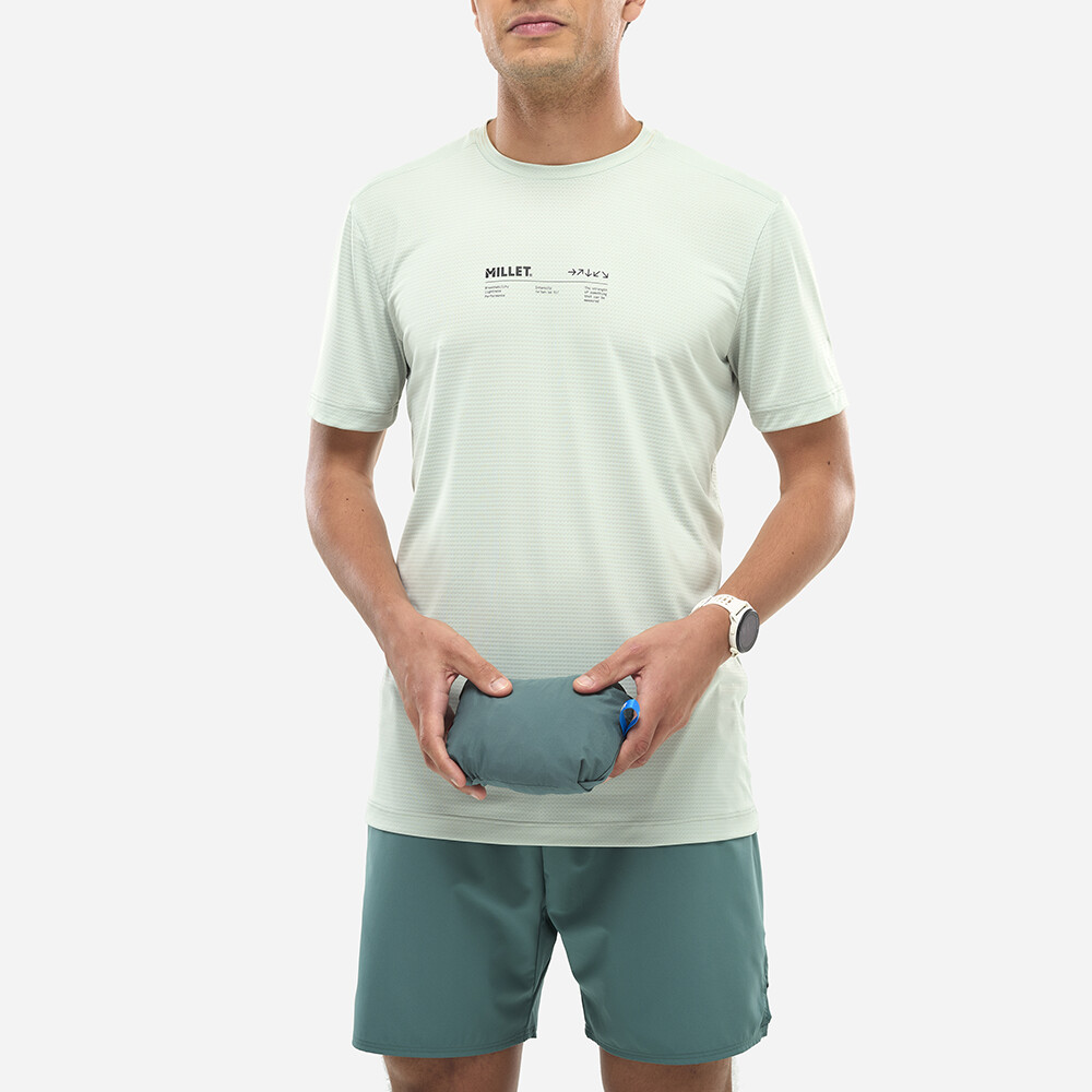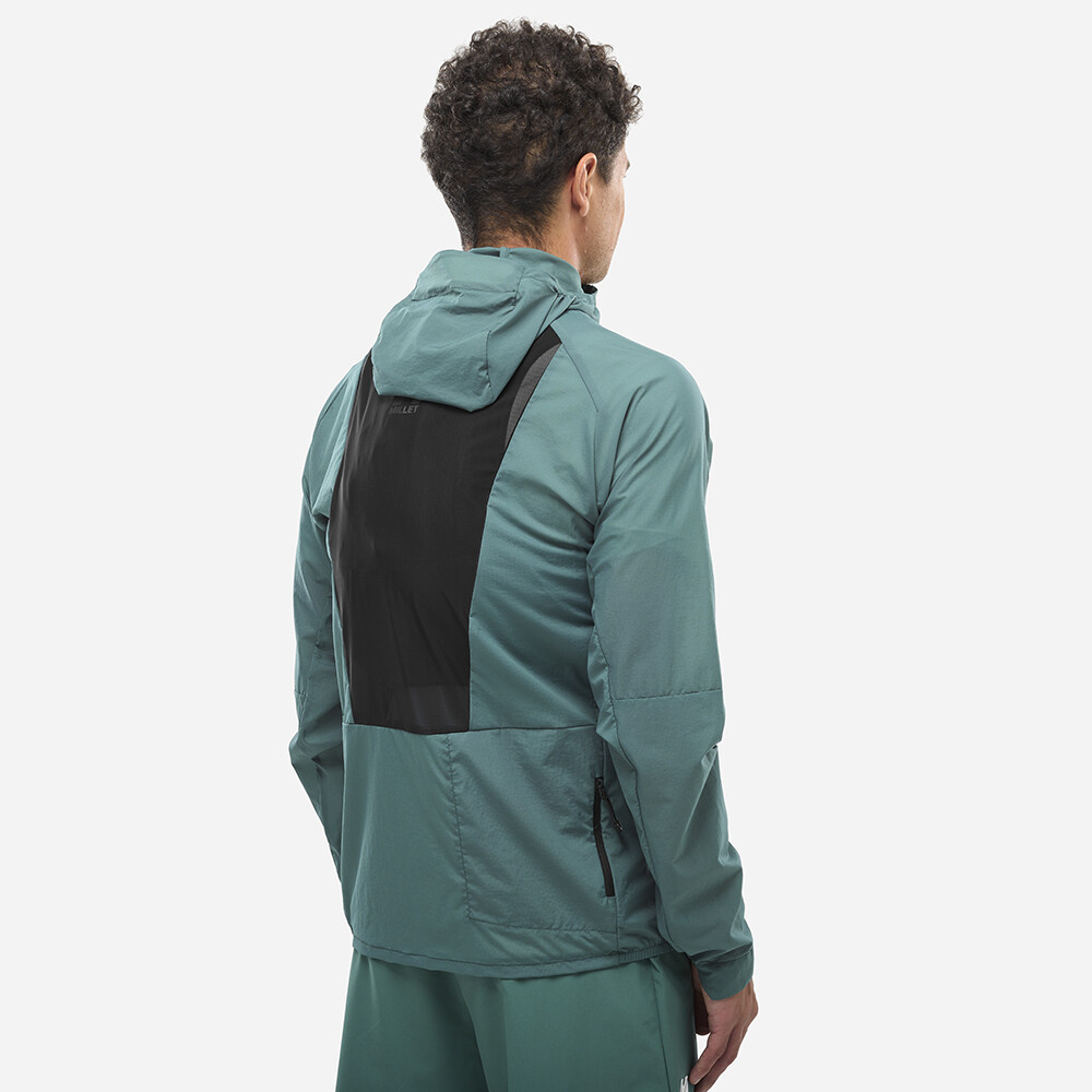 Jacheta INTENSE WINDBREAKER Men de la Millet protejează în mod fiabil împotriva vântului atunci când vă deplasați rapid pe teren. Datorită elasticității sale ridicate, o puteți trage cu ușurință peste rucsac.