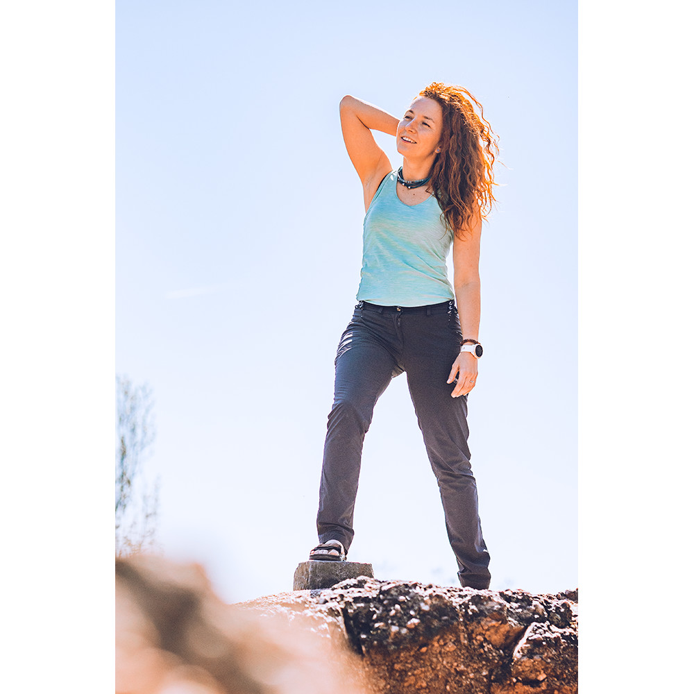 Pantaloni funcționali ușori de la Direct Alpine, da. Materialul cu uscare rapidă, finisajul fără călcare și croiala simplă care recunoaște curbele corpului unei femei sunt garantate să vă pună un zâmbet pe față. Pantalonii au un număr suficient de buzunare și cusături decorative la nivelul picioarelor, buzunarelor și la spate. Pantalonii Iris pot fi folosiți de primăvara până toamna.