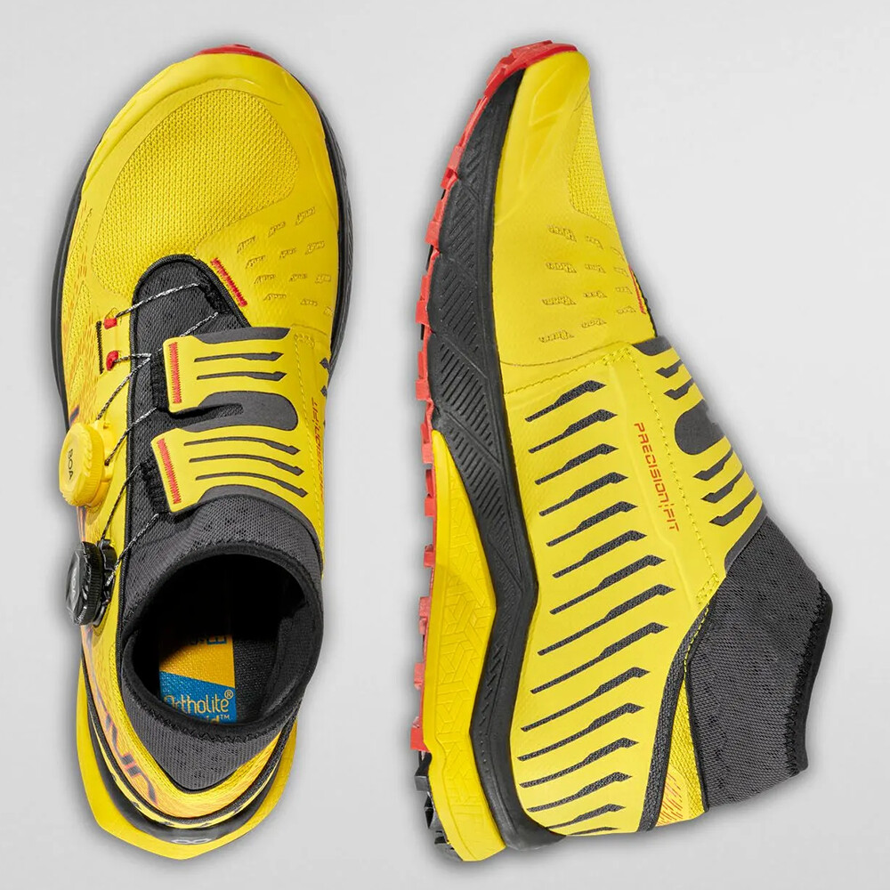 Pantoful de trail running performant Jackal II BOA de la La Sportiva va crește literalmente pe tine. O clapetă dublă din microfibră triplu stratificată și șireturi rapide cu două zone asigură o potrivire perfectă pe piciorul tău. Sistemul BOA permite ajustarea precisă a strângerii pantofului ori de câte ori este nevoie.