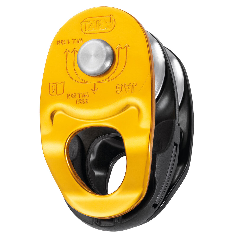 Polei dublu Jag pentru construcția de diverse trolii etc. Poleiul este ideal pentru utilizarea cu poleiul Jag traxion cu bloc dublu pentru a construi un sistem de polițe 4:1. Poleiurile sunt montate pe rulmenți cu bile încapsulate pentru o eficiență superioară.
