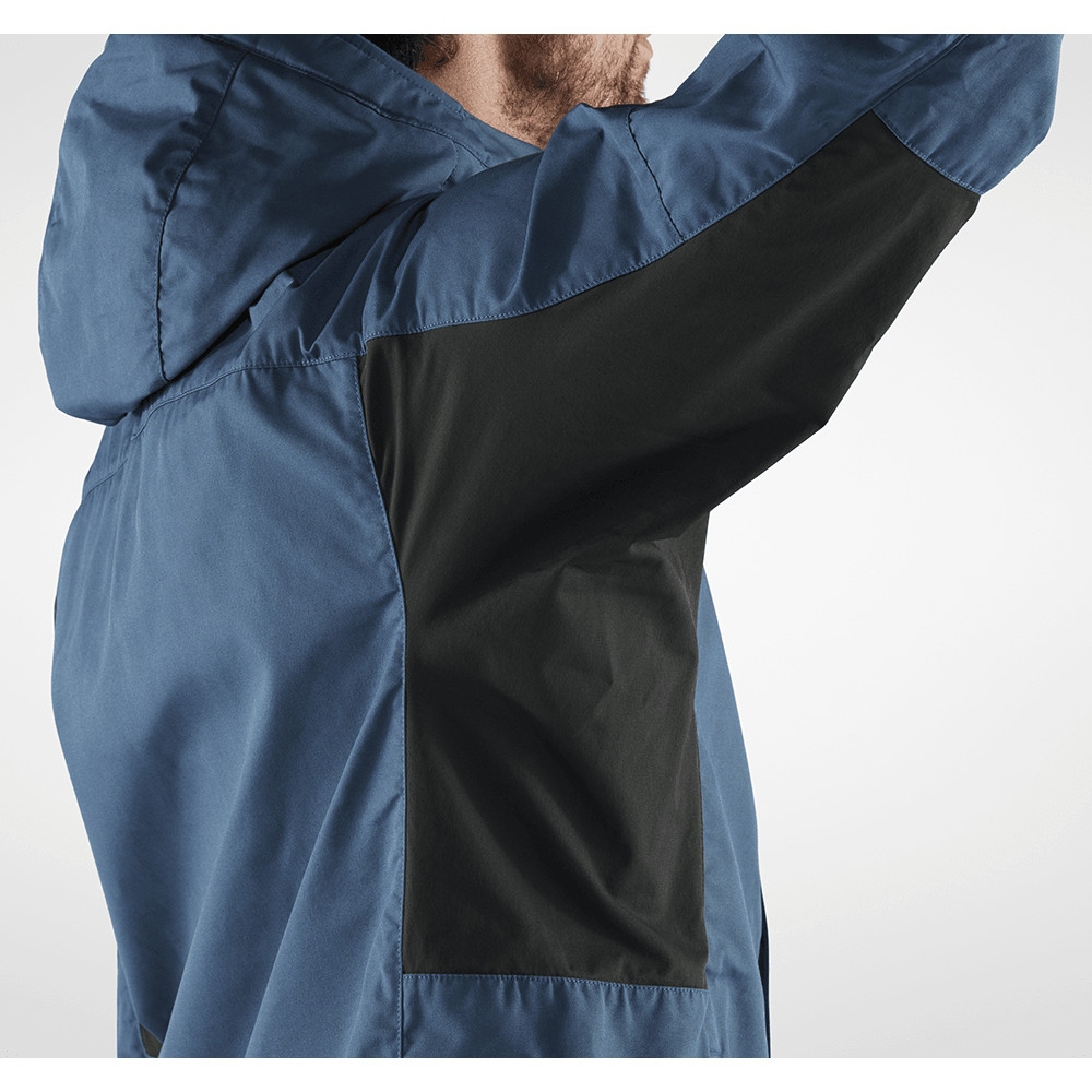 Geacă de vânt Fjällräven ușoară și ușor de împachetat, cu strat de ceară. O puteți folosi pentru excursii la țară, drumeții în munți, dar și pentru ciclism. Poate rezista vântului și ploii ușoare. Capota este integrată și reglabilă. Mânecile au un capăt elastic, iar tivul este de asemenea reglabil.