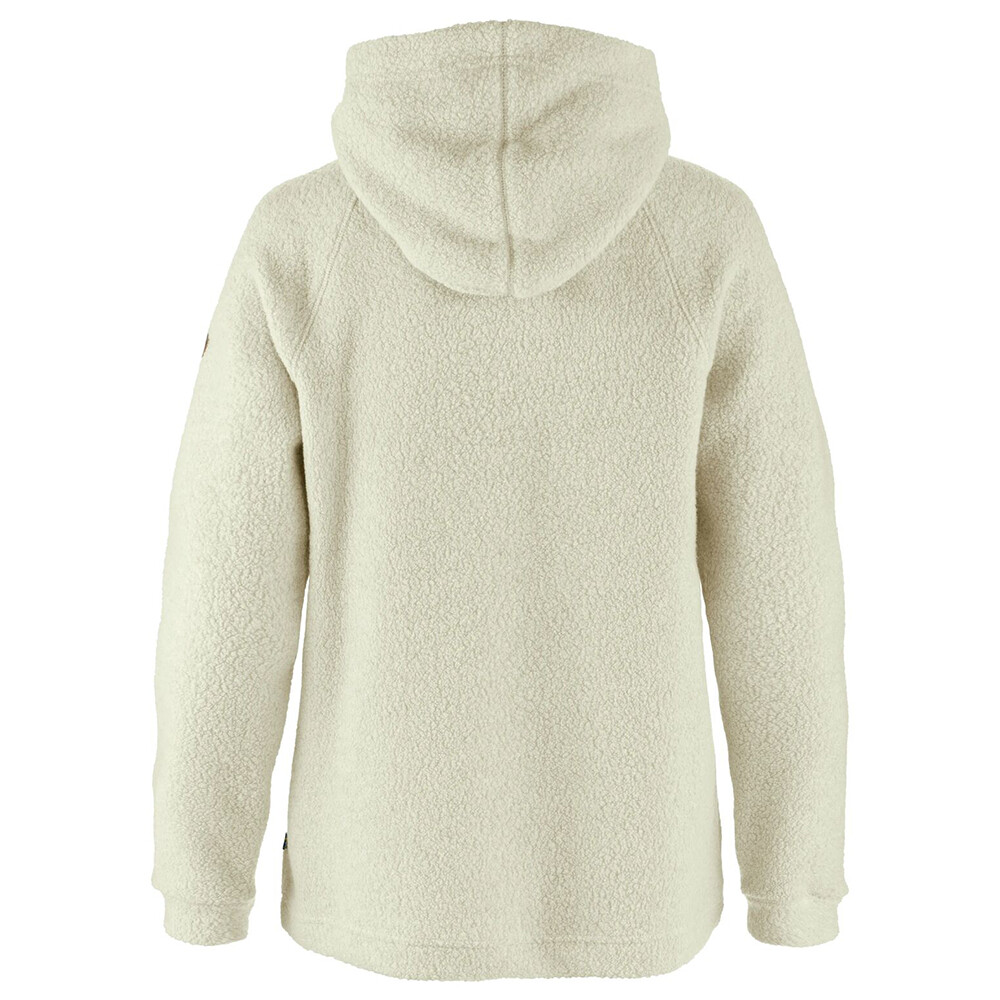 Hanorac cu glugă Kaitum pentru femei de la compania suedeză Fjällräven, pentru purtare zilnică. Hanoracul este fabricat dintr-un amestec de lână merino și material sintetic. Capota are un microfleece frumos din material reciclat pe interior și un crossover elegant pe față.