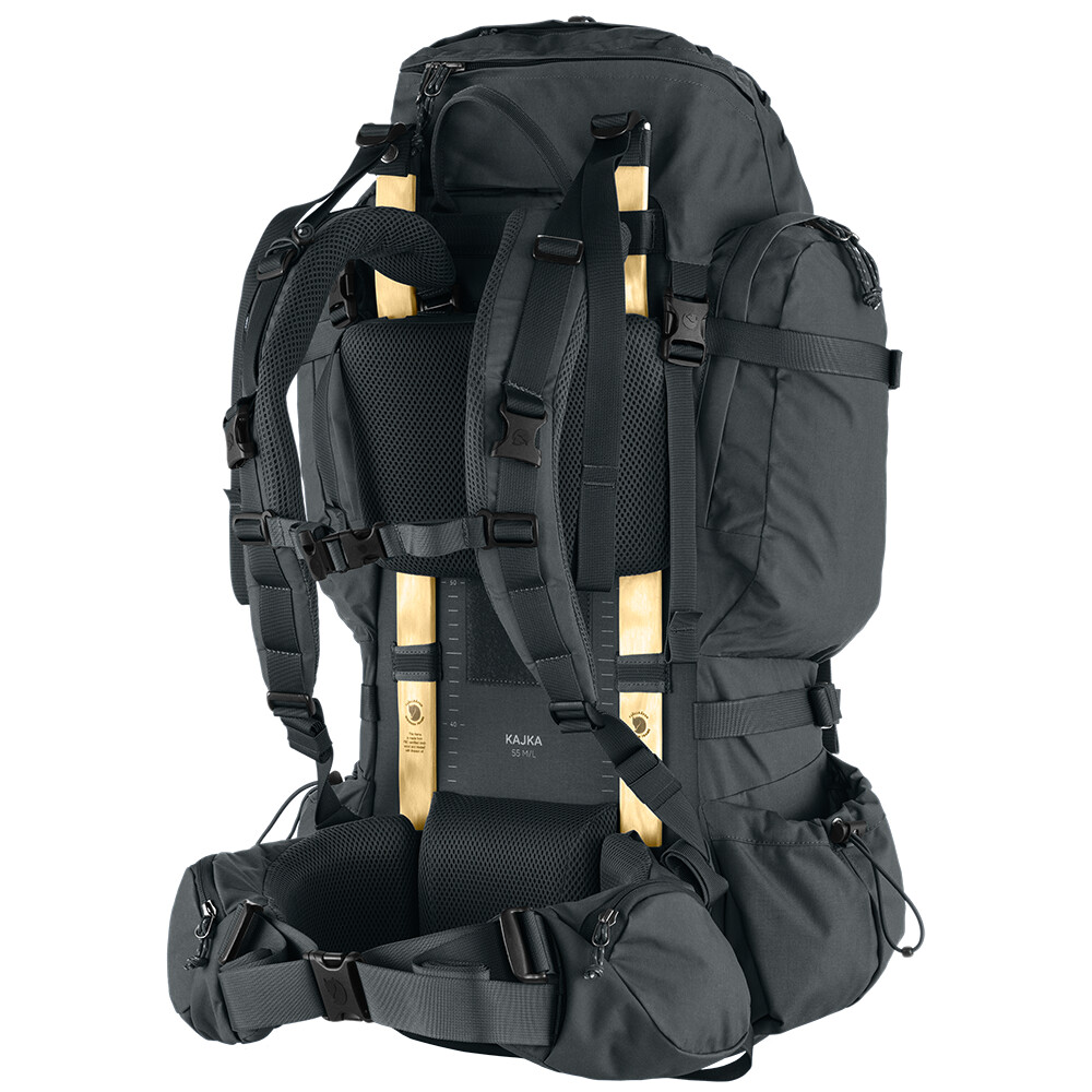 Rucsacul Kajka 55 M/L de la Fjällräven este un companion fiabil pentru drumeții, de care vor fi impresionați toți entuziaștii stilului de viață în aer liber. Acum are un design nou și se remarcă printr-un confort și mai bun, nu numai datorită construcției sale mai ușoare, ci și datorită caracteristicilor inovatoare de susținere, cum ar fi curelele de umăr ergonomice și o centură mai reglabilă.