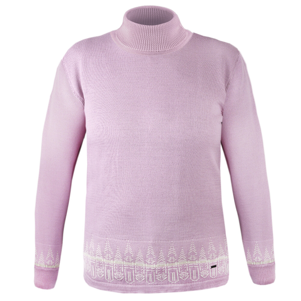 Pulover de damă cu guler ridicat de la Kama din 100% lână Merino. Croială simplă cu un model subtil pe mâneci și tiv. Puloverul cu guler înalt poate fi purtat în fiecare zi pentru muncă și pentru petrecerea timpului liber. Firul din 100% lână Merino este moale și confortabil.