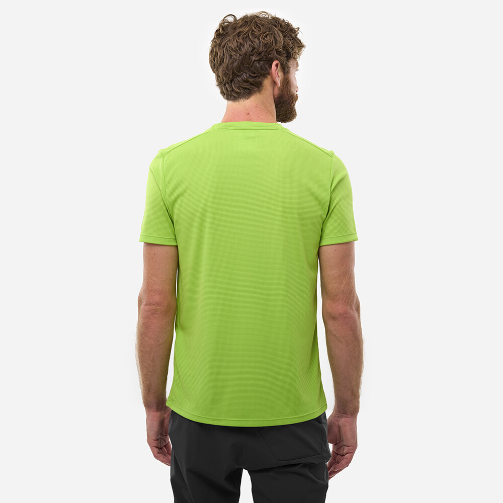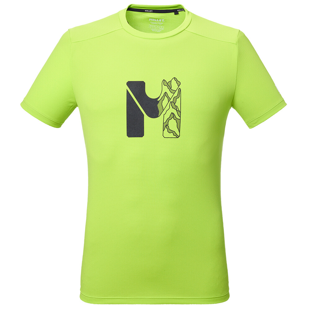 Tricoul este fabricat din material funcțional Polartec® Power Dry® care este ușor, foarte respirabil și rezistent la abraziune. Cu un procent ridicat de poliester reciclat, acesta reduce povara asupra mediului fără a compromite performanța. Materialul îndepărtează eficient umezeala de pe corp și se usucă rapid, menținându-vă uscat chiar și pe urcările solicitante. Tratamentul antibacterian natural reduce mirosul în timpul activității intense, ceea ce veți aprecia în special în timpul evenimentelor de mai multe zile. Ținuta activă nu restricționează mișcarea, gâtul rotund clasic se potrivește bine sub straturi suplimentare, iar mânecile scurte sunt ideale pentru condiții mai calde. Pieptul prezintă un imprimeu exclusiv Millet cu un motiv montan integrat în litera emblematică M.