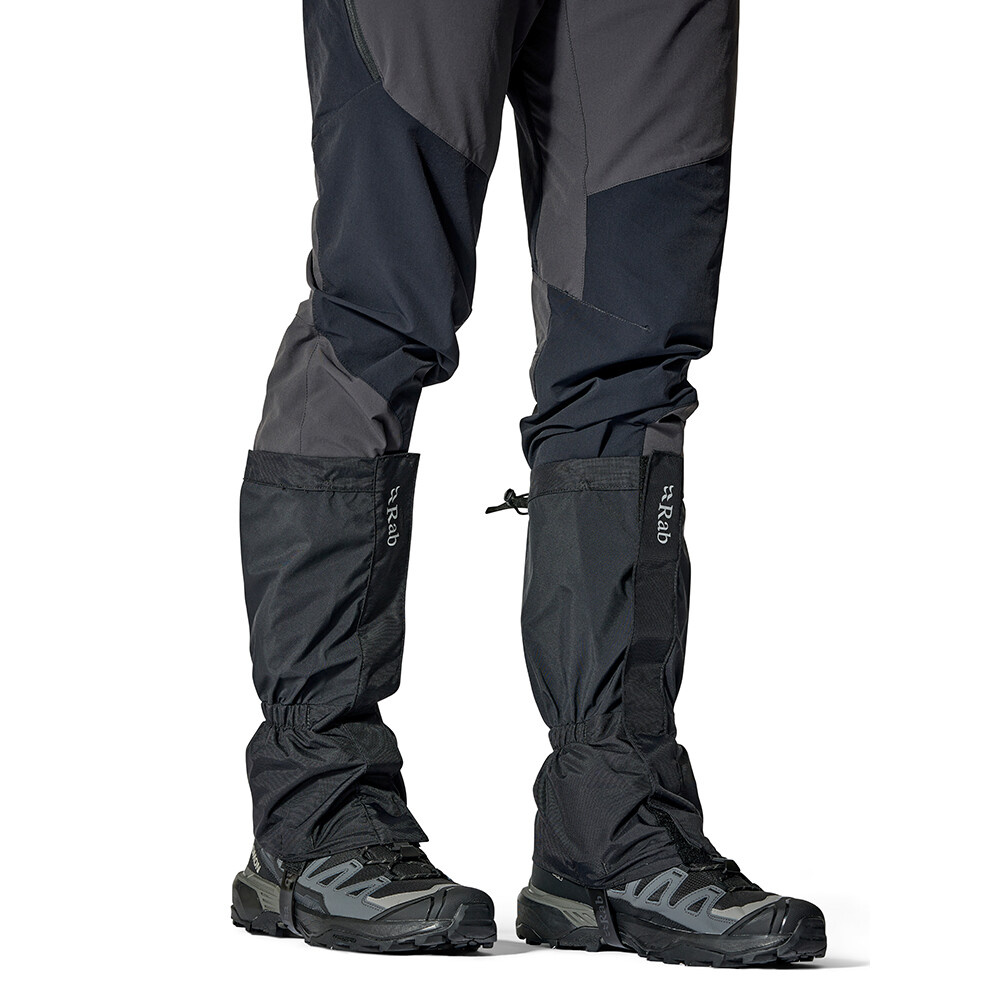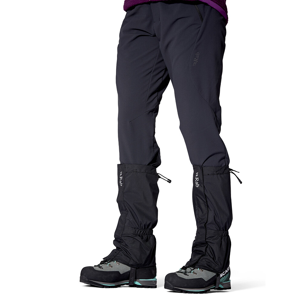 Husele Kangri GTX de la Rab vă vor proteja perfect pantalonii și cizmele de umezeală atunci când mergeți pe zăpadă adâncă sau de noroi și alte murdării. Acestea sunt full-zip cu închidere Velcro în față. Acest lucru le face ușor de pus chiar și cu mănuși groase de iarnă. Există un cordon în partea de sus, un cârlig în partea din față pentru a le atașa la șireturile cizmelor și o curea robustă care ține capacul sub talpă. Interiorul mănușilor este fabricat din material ranforsat pentru a preveni deteriorarea, de exemplu atunci când mergeți cu crampoane. Membrana Gore-Tex® le face impermeabile și respirabile.