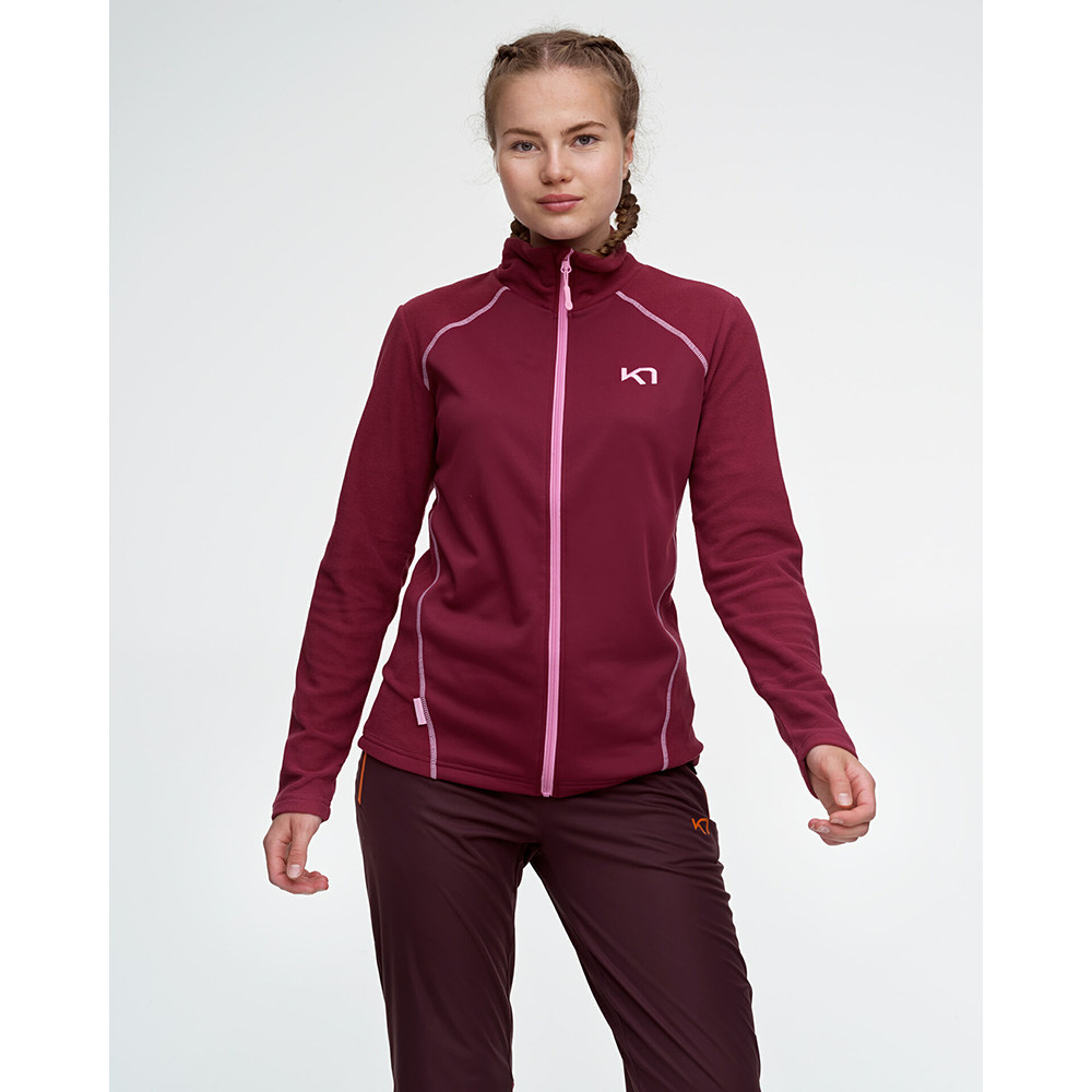 Hanoracul pentru femei cu fermoar complet din fleece moale de la Kari Traa vă va menține cald în mod fiabil în orice vreme. Poate fi purtată ca un strat izolator sub o jachetă de top sau singură, ca un hanorac peste un tricou, atunci când se face frig afară. Jacheta este flexibilă, nu împiedică mișcarea și, în plus, materialul său cu uscare rapidă transportă umezeala departe de corp.