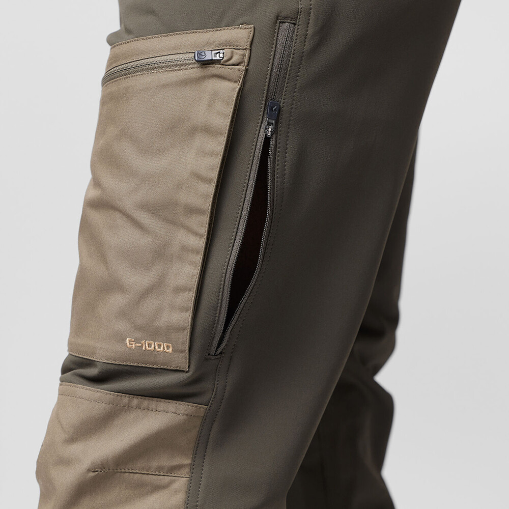 Pantalonii sunt confecționați din țesătură dublă elastică. Partea interioară perlată vă va menține cald și confortabil. Întăririle de pe buzunare, genunchi și picioare din G-1000 Eco Stretch vor crește durabilitatea pantalonilor. Pantalonii sunt finisați cu fermoare pentru a fi purtați cu cizme de drumeție. O mulțime de buzunare păstrează tot ce aveți nevoie la îndemână.