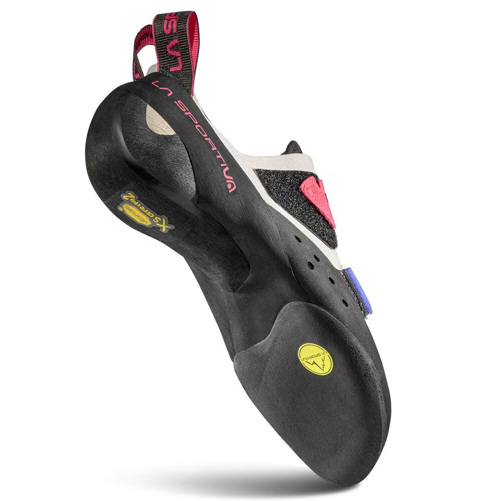 Pantofii de alpinism pentru femei Kubo de la brandul italian La Sportiva sunt pantofi cu adevărat versatili, în special pentru alpinismul de interior. Sunt perfecți atât pentru coardă, cât și pentru bouldering. Au un vârf precis și mediu dur, cu cauciucare pentru agățarea în surplomb și un călcâi care se potrivește perfect. Și asta este exact ceea ce ai nevoie pe perete. Dar dacă scoateți Kubo ocazional la escaladă, cu siguranță îi veți face de rușine acolo. Cea mai mare parte a cauciucului folosit la fabricare provine din surse reciclate și, desigur, puteți înlocui o talpă târâtă.