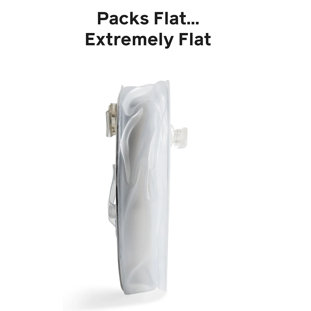 Lanternă gonflabilă, cu încărcare USB-C sau panou solar încorporat. Inclusiv funcție de bancă de energie. Foarte compactă, 38 mm grosime când este pliată. Are patru moduri de lumină albă rece cu o durată de 50h.