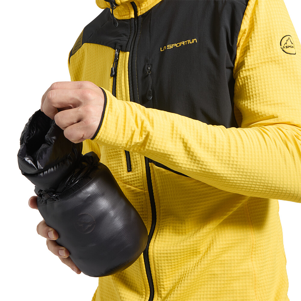 Hanoracul ultraușor pentru bărbați La Sportiva Alpine Guide Primaloft Hoody este cald chiar și atunci când este ud. Datorită materialului exterior surprinzător de durabil, o puteți folosi fără griji nu numai pentru drumeții, ci și pentru alpinism exigent.