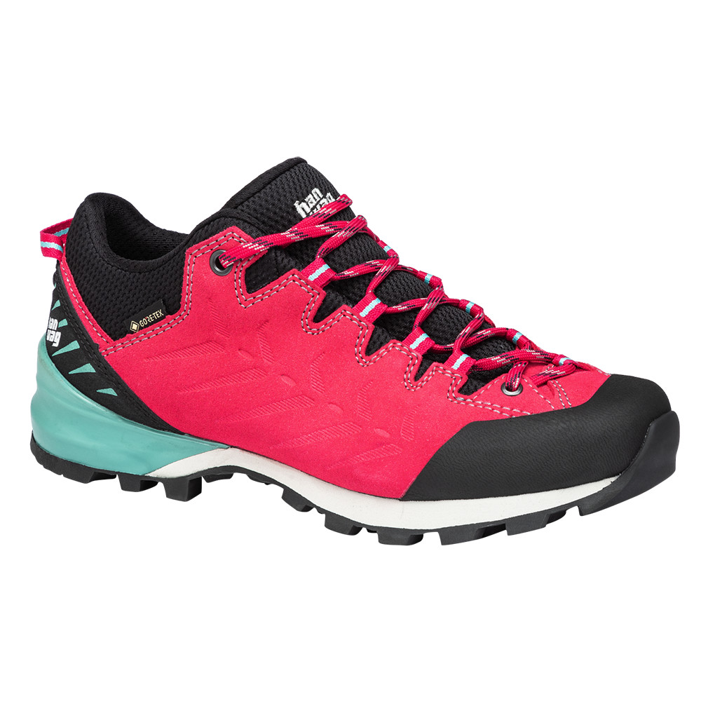 Încălțămintea Hanwag Makra Pro Low Lady GTX este partenerul ideal de drumeție pentru mediile montane dificile. Datorită părții superioare din piele rezistentă Perwanger și a membranei Gore-Tex®, acestea pot rezista cu succes rigorilor terenului și vremii.
