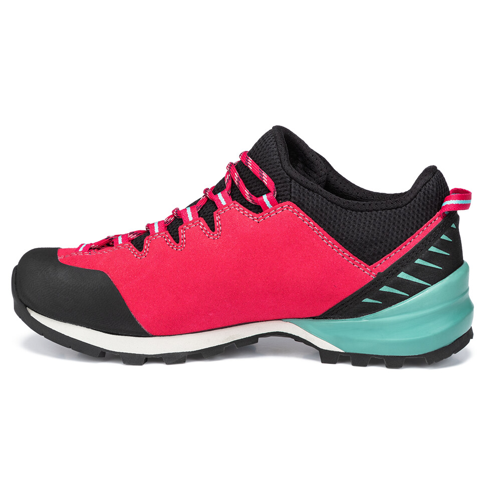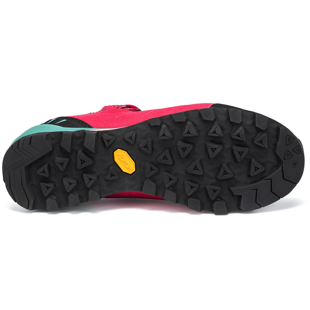 Talpa este piatra de temelie a oricărui pantof de abordare de calitate. De aceea, Makra Pro Low Lady GTX are o talpă Vibram® Makra special concepută. Datorită rigidității sale optime și a modelului mai grosier, aceasta garantează o aderență perfectă la suprafață. Șireturile extinse și talpa intermediară combinată contribuie, de asemenea, la senzația generală de siguranță. Cuiul din poliuretan de sub călcâi asigură o amortizare perfectă, iar spuma EVA din partea anterioară a piciorului crește sensibilitatea zonei degetelor.