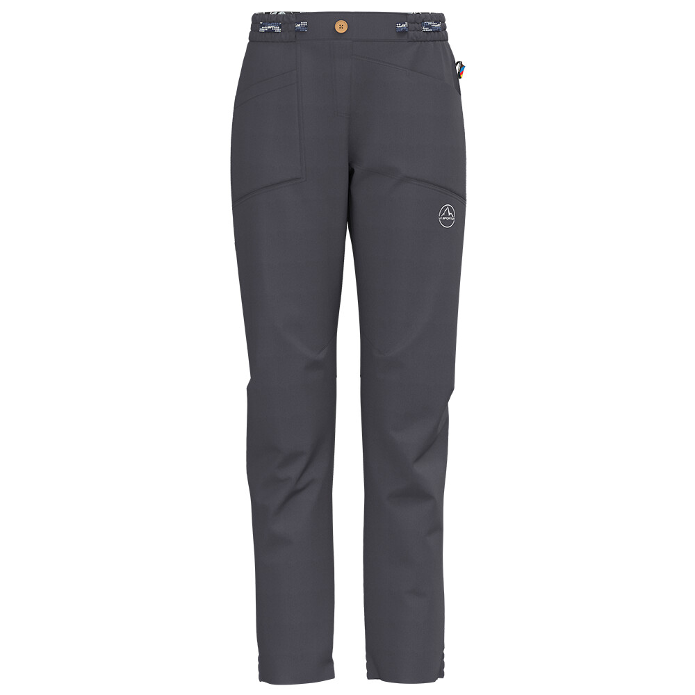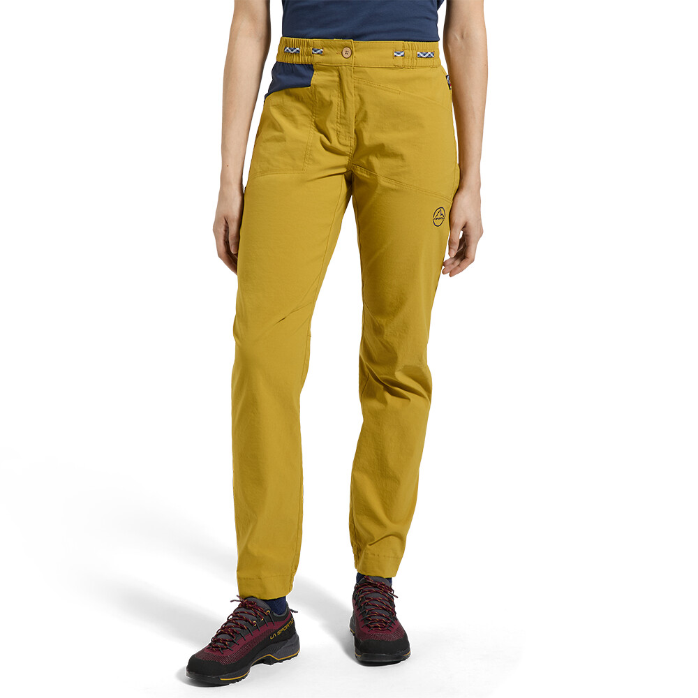 Pantalonii de alpinism pentru femei de la La Sportiva sunt confecționați din material foarte rezistent. Pantalonii au două buzunare, o talie minimalistă și 1 buzunar spate cu fermoar.