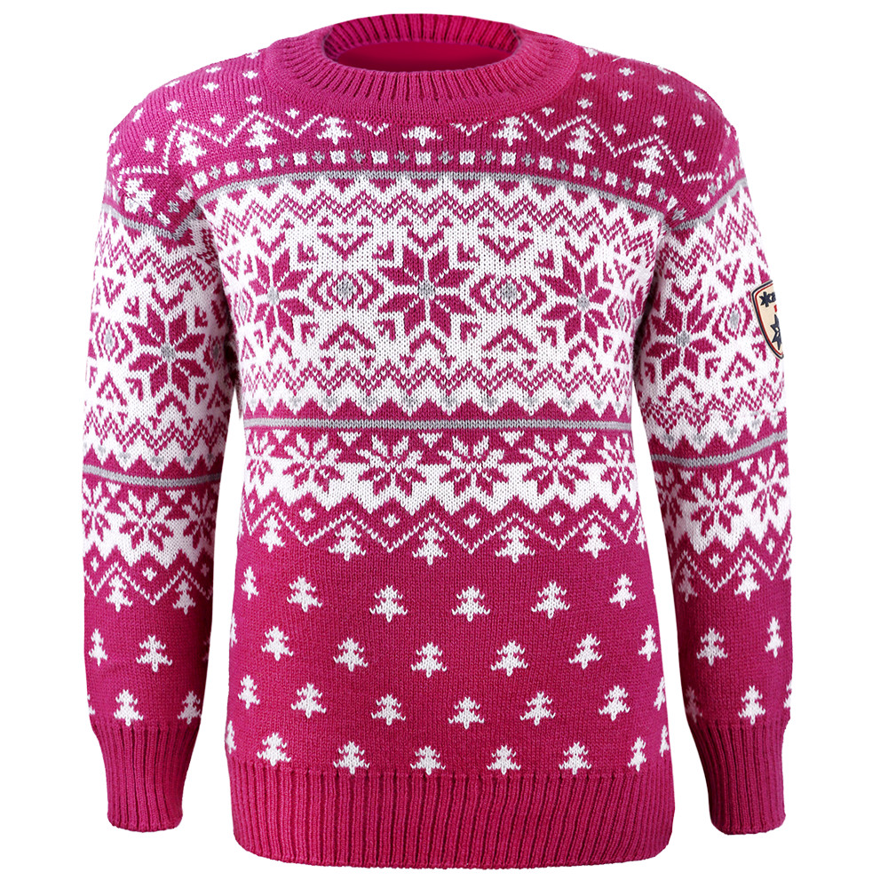 Puloverul este fabricat dintr-un material Schoeller tratat special, care combină lâna Merino și acrilicul. Materialul este cald, respirabil și adaptat pentru purtare frecventă și întreținere ușoară. Copiii vor adora modelul imaginativ.