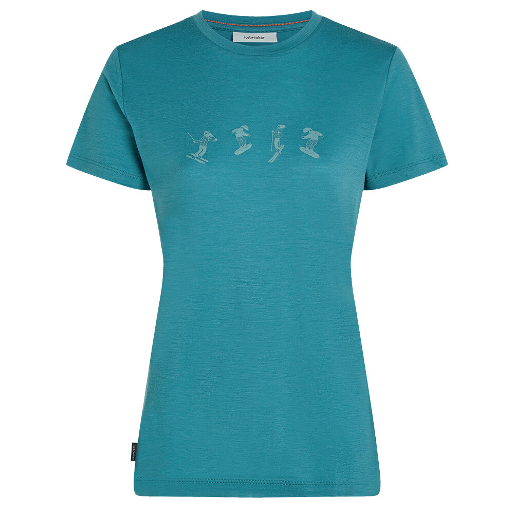 Acest tricou este fabricat din 100% lână merino pentru a asigura confort, respirabilitate și prospețime pe tot parcursul zilei. Croiala pentru femei cu mâneci scurte și gât rotund se potrivește confortabil. Tricoul are cusături de umăr decalate pentru a reduce frecarea și pentru a-l face mai confortabil de purtat atunci când mergeți cu rucsacul în spate. Imprimeul jucăuș al schiorilor și snowboarderilor amintește de bucuria mișcării și de experiențele de neuitat în natură.