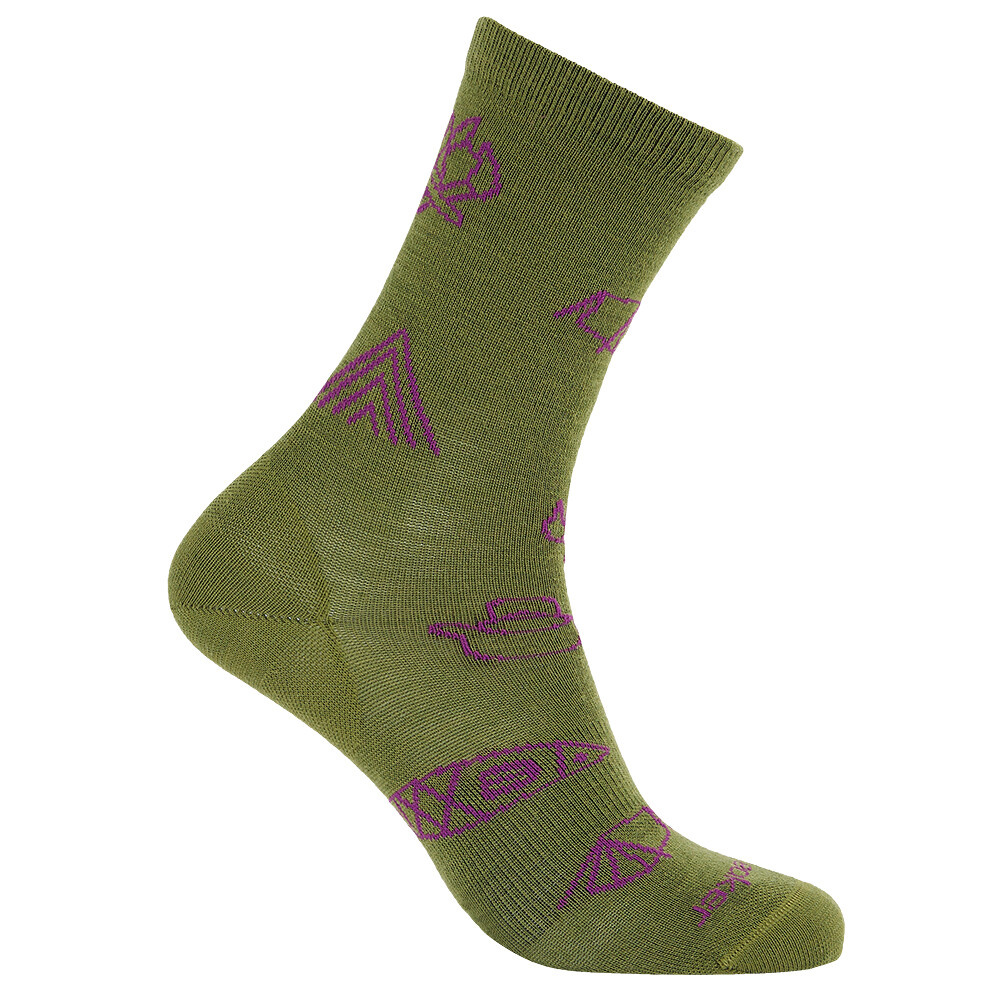Aceste șosete sunt fabricate din lână Merino și materiale sintetice. Acest lucru face șosetele respirabile, antibacteriene și izolante. Șosetele au vârful și călcâiul ranforsate pentru un plus de confort și durabilitate. Tăietura călcâiului Achilles menține șosetele în locul potrivit. Modelul adaugă interes.