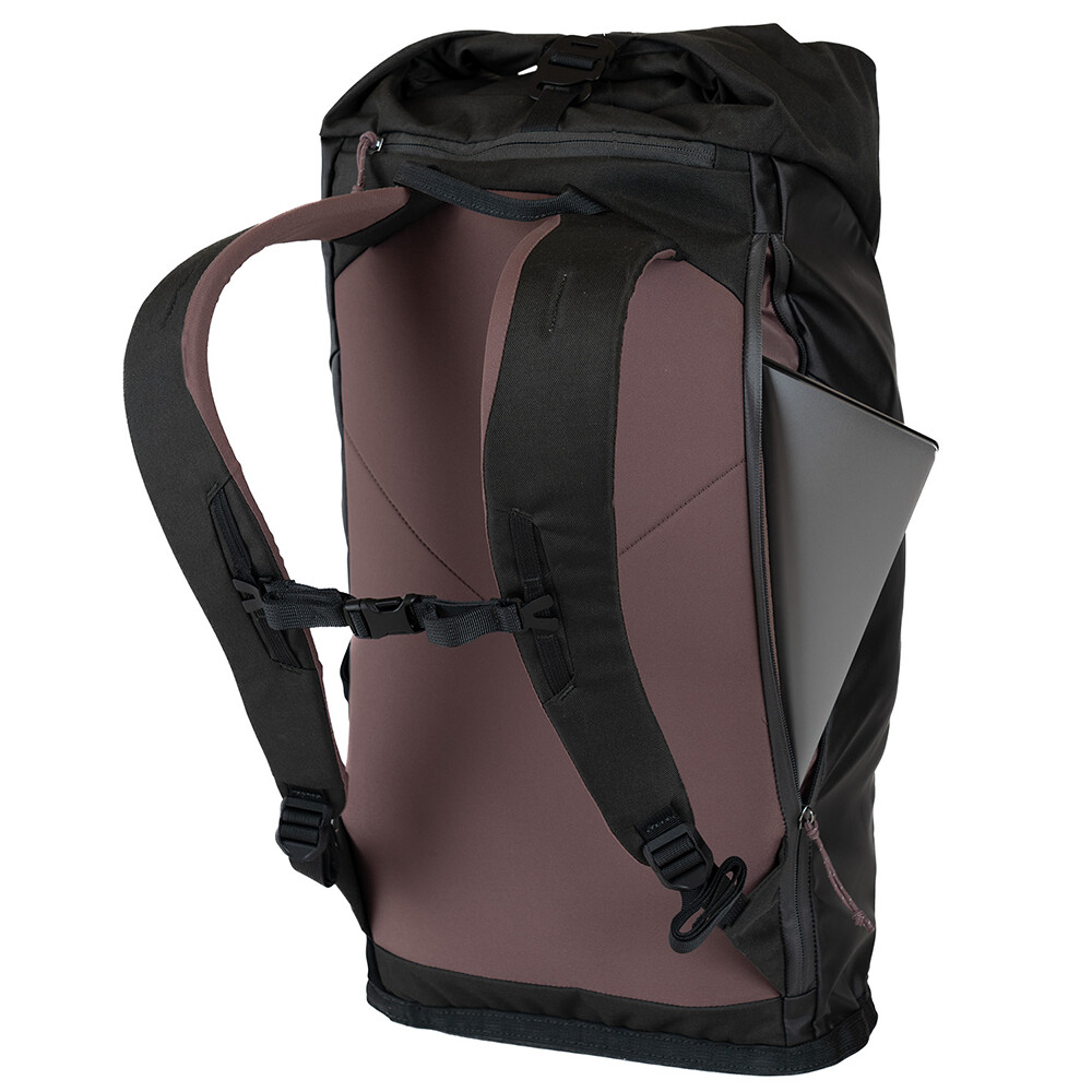 Rucsac de oraș cu buzunar căptușit pentru laptop de 15". Are un organizator intern pentru obiecte mici, buzunare laterale pentru o sticlă și curele cu cordon bidirecțional, cu care puteți atașa o saltea sau un sac de dormit la rucsac.