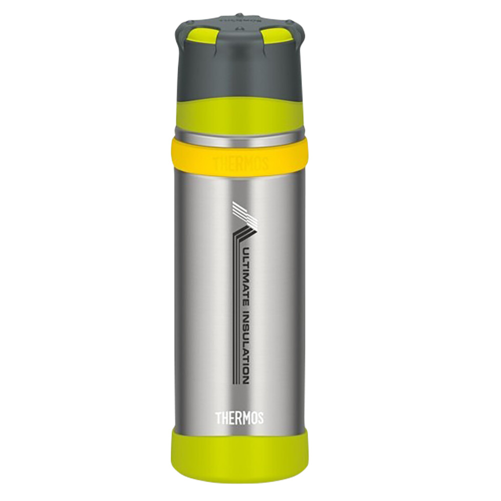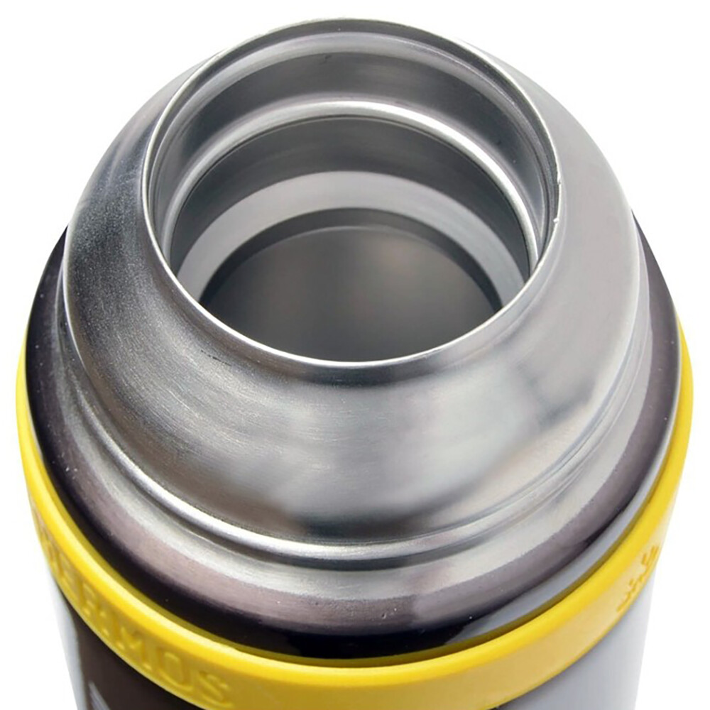 Termosul Mountain cu pereți dubli de la Thermos este fabricat din oțel inoxidabil de înaltă calitate și totuși este ușor, comparabil cu termosurile fabricate din titan. Manșonul de cauciuc de pe fund și inelul antiderapant de sub capac asigură o manevrare sigură chiar și cu mănuși groase și, de asemenea, protejează termosul în caz de cădere pe sol. Capacul dublu trebuie slăbit doar cu o jumătate de tură și puteți turna fără probleme. Acesta păstrează băuturile calde și reci timp de 24 de ore.
