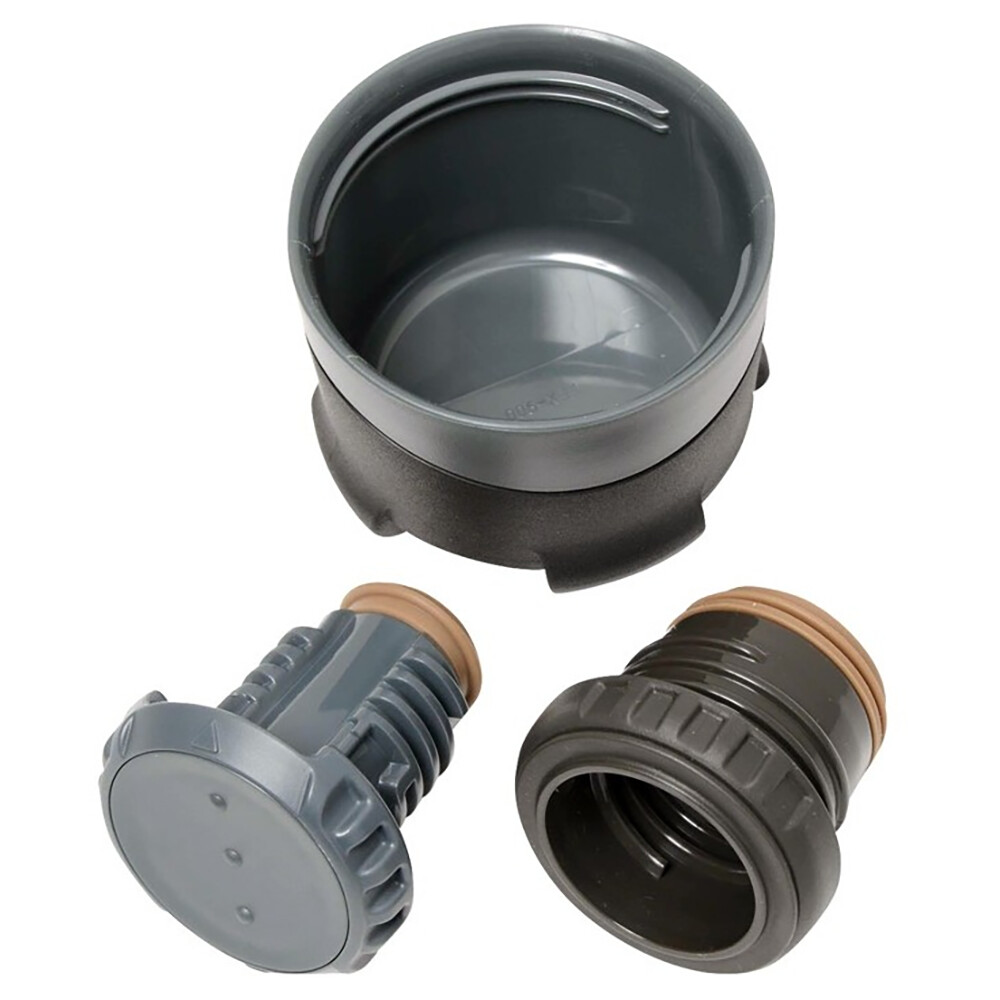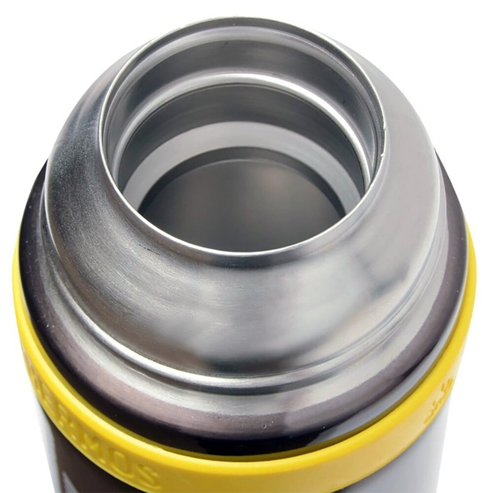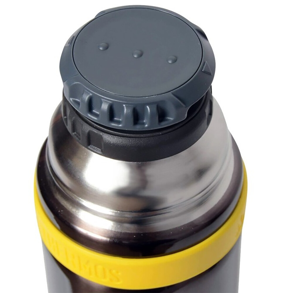 Termosul Mountain cu pereți dubli de la Thermos este fabricat din oțel inoxidabil de înaltă calitate și totuși este ușor, comparabil cu termosurile fabricate din titan. Manșonul de cauciuc de pe fund și inelul antiderapant de sub capac asigură o manevrare sigură chiar și cu mănuși groase și, de asemenea, protejează termosul în caz de cădere pe sol. Capacul dublu trebuie slăbit doar cu o jumătate de tură și puteți turna fără probleme. Păstrează băuturile calde timp de 30 de ore, iar băuturile reci timp de până la 32 de ore.