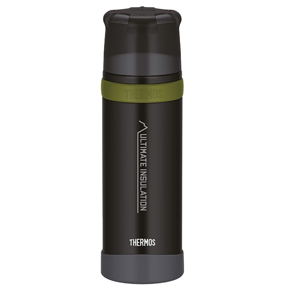 Termosul Mountain cu pereți dubli de la Thermos este fabricat din oțel inoxidabil de înaltă calitate și totuși este ușor, comparabil cu termosurile fabricate din titan. Manșonul de cauciuc de pe fund și inelul antiderapant de sub capac asigură o manevrare sigură chiar și cu mănuși groase și, de asemenea, protejează termosul în caz de cădere pe sol. Capacul dublu trebuie slăbit doar cu o jumătate de tură și puteți turna fără probleme. Păstrează băuturile calde timp de 30 de ore, iar băuturile reci timp de până la 32 de ore.