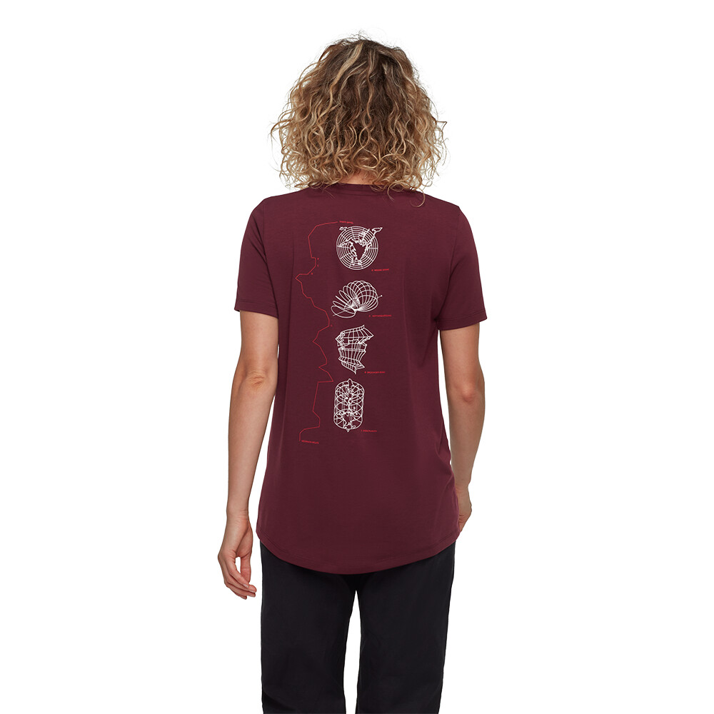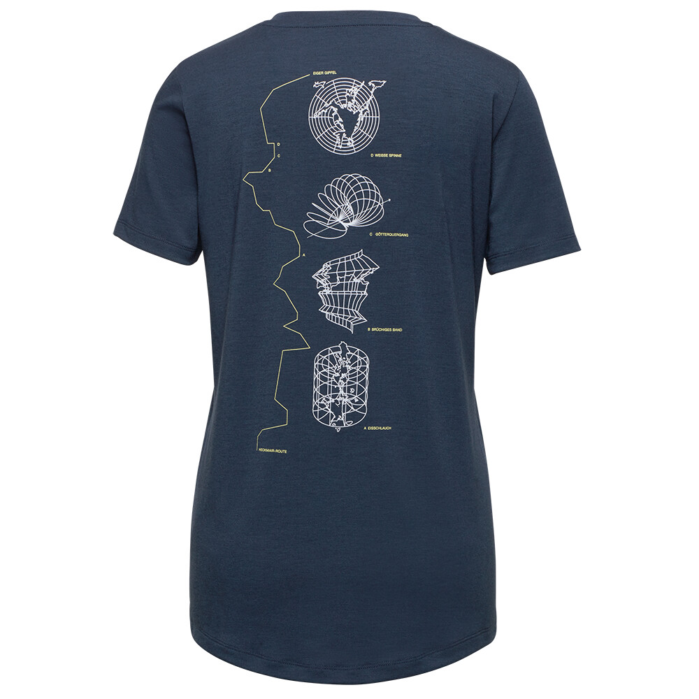Tehnologia Drirelease® vă oferă un climat confortabil chiar și în zilele călduroase. Combinația de poliester reciclat și bumbac organic este moale, respirabilă și cu uscare rapidă. Nu numai în mișcare, veți aprecia întreținerea ușoară. Croiala pentru femei cu mâneci scurte și gât rotund se potrivește confortabil. Cusăturile de pe umeri sunt decalate, astfel încât să nu încurce atunci când sunt combinate cu un rucsac. Grafica se referă la linia rutei Heckmair, escaladată pentru prima dată de Anderl Heckmair.