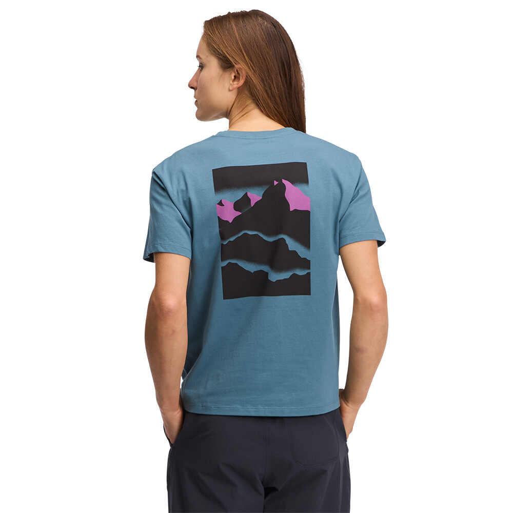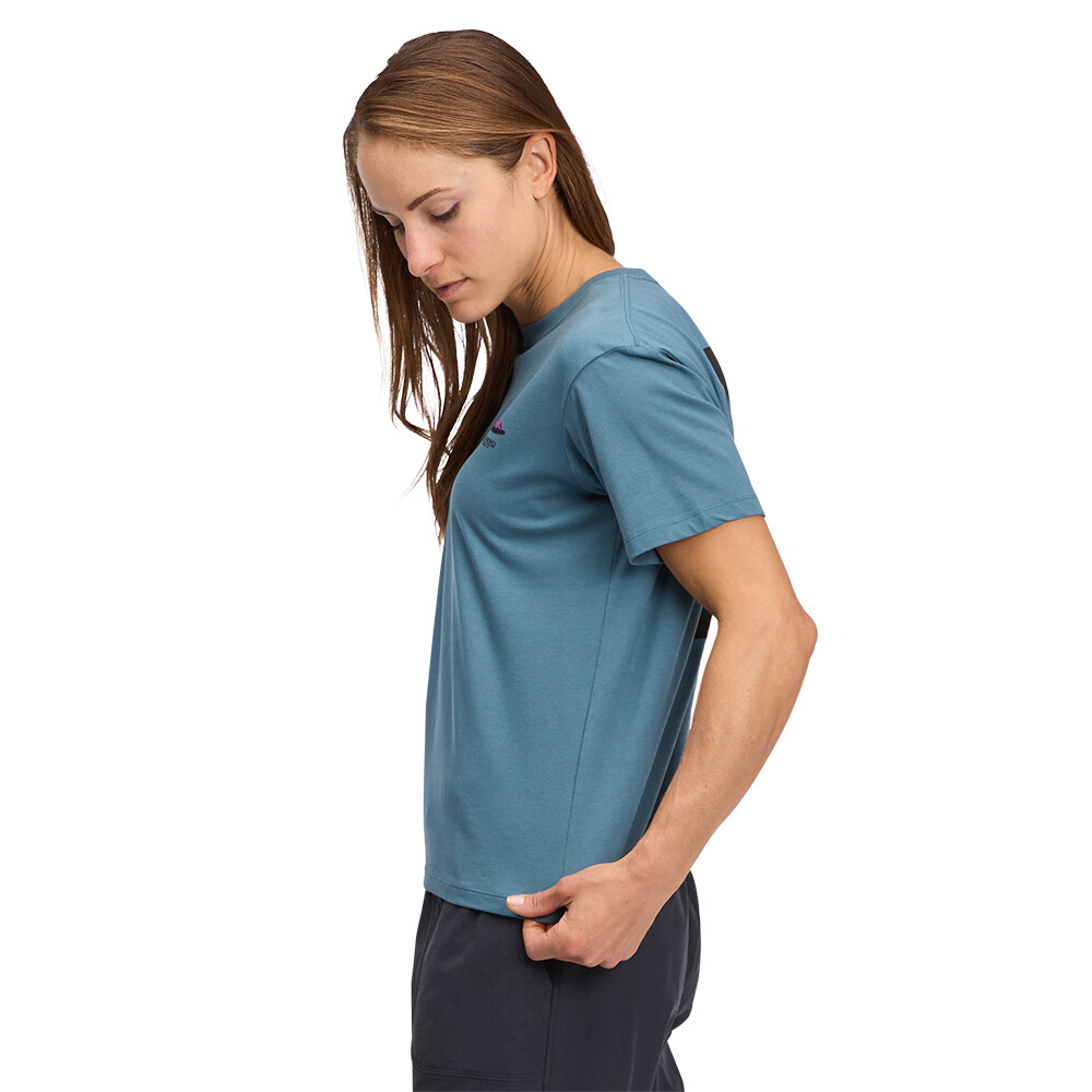 Tricou cu mânecă scurtă pentru femei Mountainscape SS Tee de la compania americană Black Diamond, cu grafică montană frumoasă.