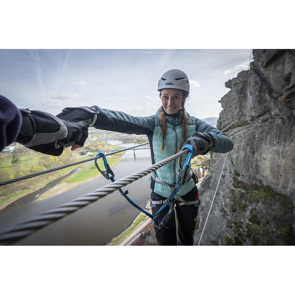 MR. MAGNET este un element special pentru conectarea brațelor setului ferrata, care a fost primul din lume dezvoltat în cadrul programului via ferrata al mărcii ROCK EMPIRE. Acest segment minuscul se atașează cu ușurință la brațele setului de ferrata - de obicei chiar sub carabiniere. Datorită magneților integrați, cele două brațe sunt conectate ferm, dar în același timp pot fi separate rapid și ușor. Conectarea și separarea celor două brațe MR. MAGNET este foarte simplă și intuitivă.