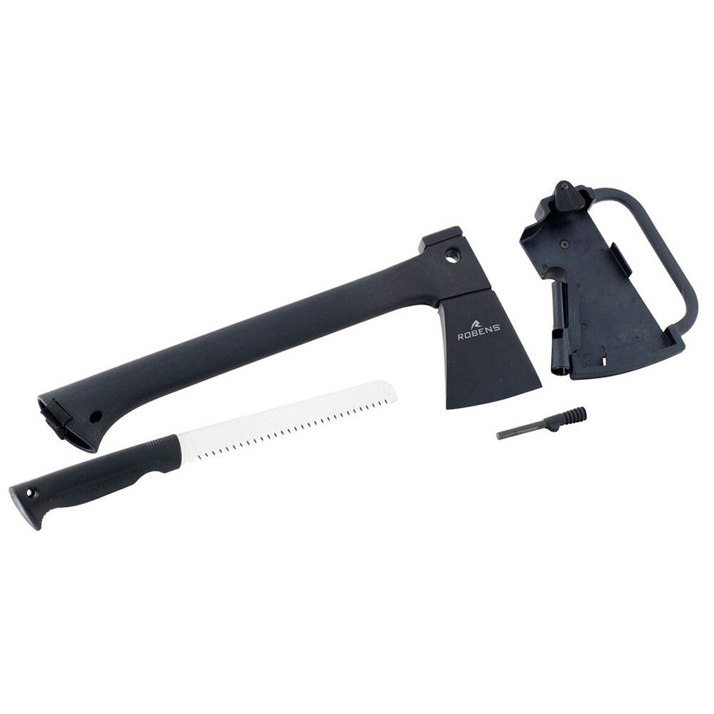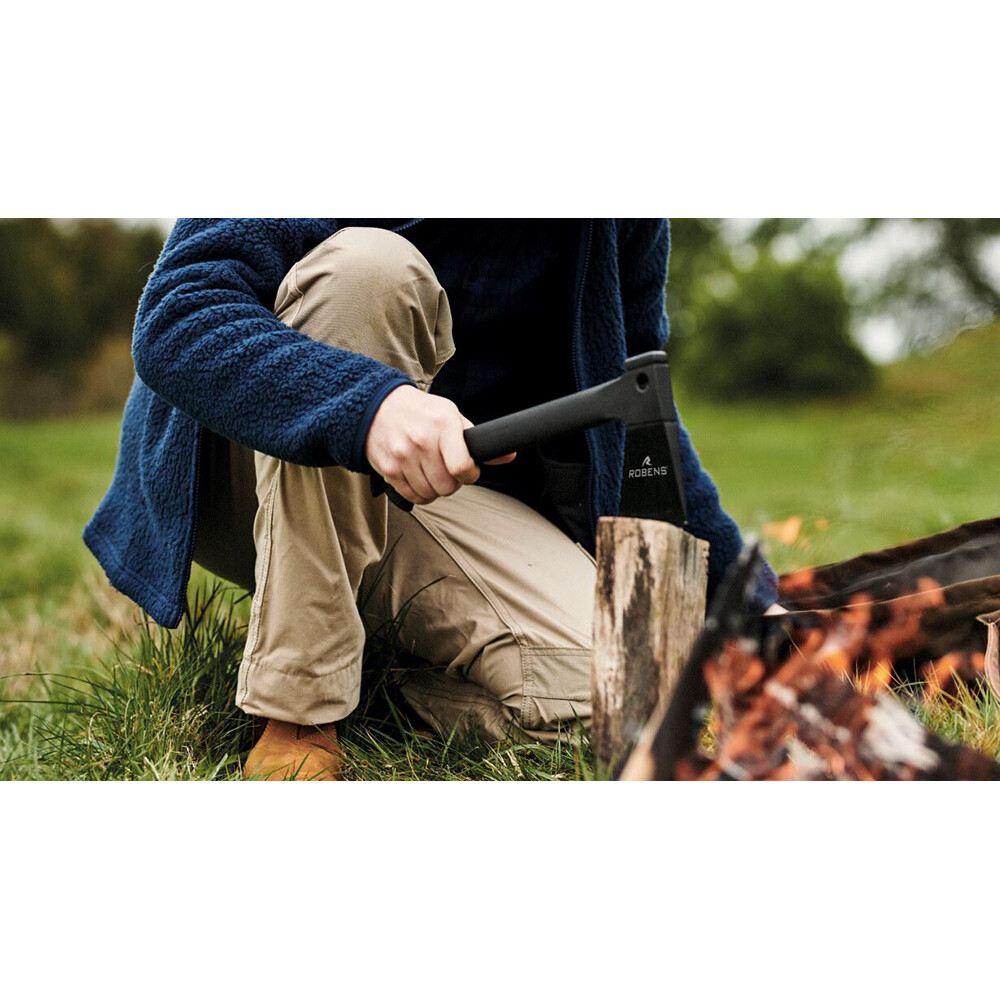 Unealta multifuncțională Multi Axe de la Robens este perfectă pentru camping și pentru pregătirea și aprinderea unui foc. Toporul cu lamă din oțel inoxidabil are un ferăstrău de mână cu o lungime a lamei de 18 cm în interiorul mânerului. Capacul de protecție al toporului include și o cremene, pe care o puteți folosi pentru a porni un foc atunci când "ciupiți" lama toporului. Toporul se ghidează bine și în interiorul rucsacului sau îl puteți atașa din exterior.