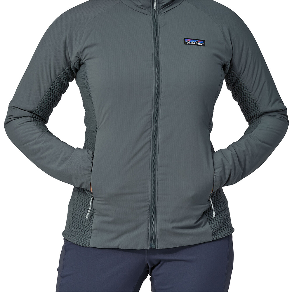 Jacheta Nano-Air® Light Hybrid Jacket Women de la brandul american Patagonia este făcută pentru momentele de vreme rece. Jacheta este respirabilă, ușoară, dar durabilă. Finisajul este 100% poliester reciclat cu un tratament DWR fără PFC, care este un strat hidrofug durabil care nu conține substanțe chimice perfluorurate. Izolația este asigurată de izolația FullRange® cu o căptușeală din poliester ușor 100% reciclat. Panourile din fleece R1® Air de pe partea superioară și inferioară a spatelui, pe laterale și sub brațe adaugă ventilație suplimentară. De asemenea, firul cu miez gol evacuează umezeala, se usucă rapid și este foarte respirabil. Fermoarul central al jachetei și cele două buzunare cu profil redus vă mențin mâinile calde, iar închiderea lor cu fermoar invizibil nu se spală cu hamul sau centura de șold a rucsacului.