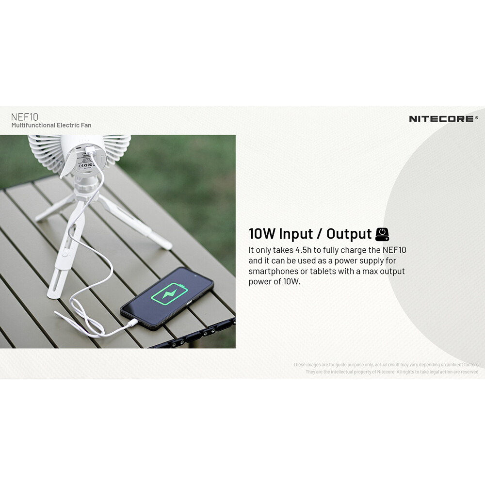 Brandul Nitecore prezintă ventilatorul multifuncțional NEF10, pe care îl veți aprecia oricând și oriunde aveți nevoie să vă răcoriți. Îl puteți monta pe un trepied, îl puteți folosi ca ventilator de mână sau îl puteți agăța cu ajutorul carabinierului inclus în cort, rulotă etc. Ventilatorul cu cinci pale are 3 intensități de putere, iar timpul maxim de utilizare la putere redusă este de până la 27 de ore. Veți aprecia, de asemenea, lumina circulară care poate străluci în trei intensități diferite și un alt avantaj este utilizarea ventilatorului ca bancă de energie. Cu un zgomot minim, nu veți fi deranjați de faptul că ventilatorul este pornit.