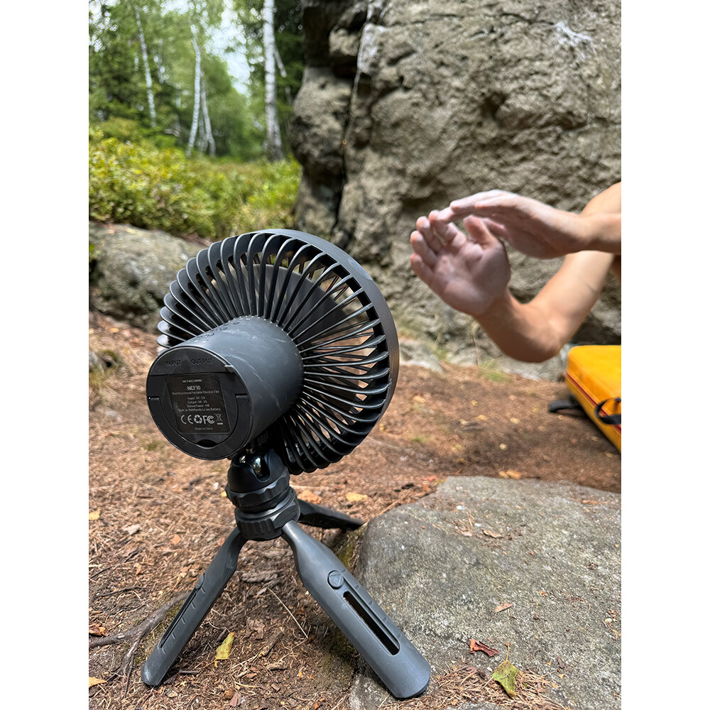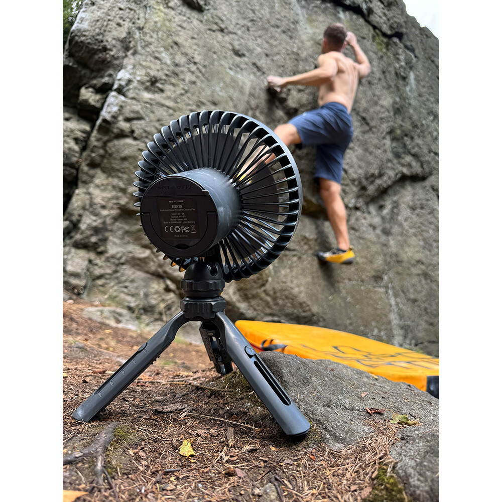 Brandul Nitecore prezintă ventilatorul multifuncțional NEF10, pe care îl veți aprecia oricând și oriunde aveți nevoie să vă răcoriți. Îl puteți monta pe un trepied, îl puteți folosi ca ventilator de mână sau îl puteți agăța cu ajutorul carabinierului inclus în cort, rulotă etc. Ventilatorul cu cinci pale are 3 intensități de putere, iar timpul maxim de utilizare la putere redusă este de până la 27 de ore. Veți aprecia, de asemenea, lumina circulară care poate străluci în trei intensități diferite și un alt avantaj este utilizarea ventilatorului ca bancă de energie. Cu un zgomot minim, nu veți fi deranjați de faptul că ventilatorul este pornit.