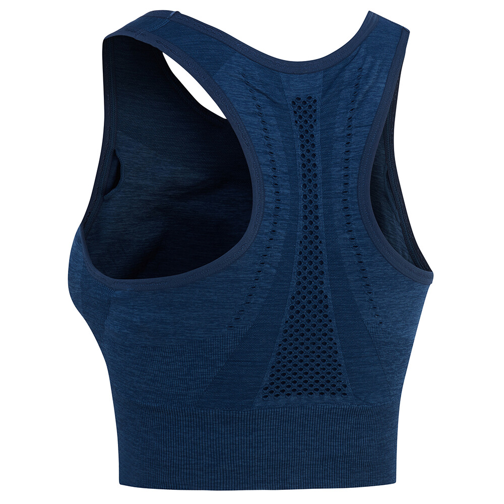 Sutienul este fabricat din material elastic și cu uscare rapidă. Croiala sportivă cu spatele decupat se potrivește perfect. Construcția fără cusături vă oferă un confort plăcut la purtare. Cupele sunt detașabile. Construcția zonală asigură o absorbție perfectă a umezelii.