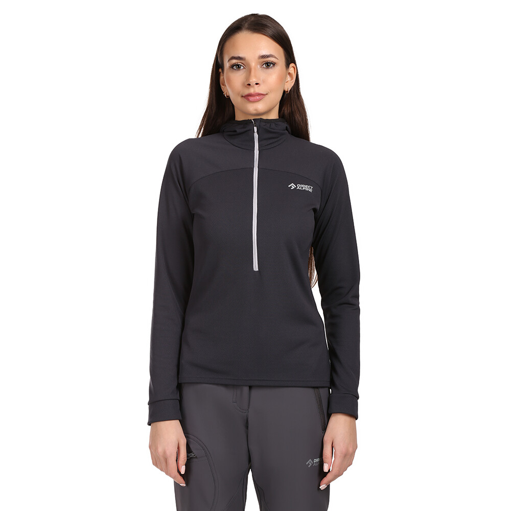 Hanorac pentru femei cu o croială anatomică sofisticată. Fleece funcțional din material reciclat îndepărtează excesul de umiditate și se usucă rapid. Sweatshirt excelent pentru alpinism, schi alpinism sau drumeții.