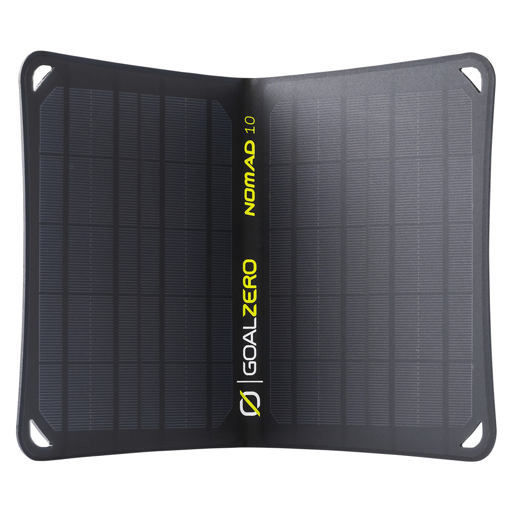 Nomad 10 este un panou solar ușor și portabil conceput în principal pentru încărcarea electronicelor mici în călătorii, expediții și oriunde unde accesul la o sursă de alimentare este dificil. Panoul poate fi atașat la un rucsac și poate reîncărca power bank-ul în timpul mersului. Cu toate acestea, este optim să setați panoul perpendicular pe soare folosind suportul reglabil. Panoul monocristalin poate încărca electronicele direct de la soare. Cu toate acestea, vă recomandăm să încărcați mai întâi power bank-ul Goal Zero (neinclus) și apoi să încărcați electronicele de la power bank.