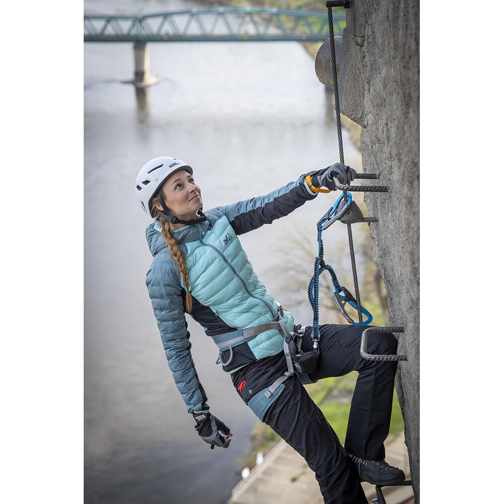 Pernă de scaun modernă pentru femei de la Blue Ice cu construcție sandwich. Harnașament universal pentru toate activitățile de alpinism.