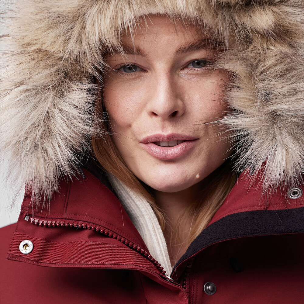 Parka este fabricată din poliamidă reciclată, care este completată de o membrană impermeabilă, rezistentă la vânt și respirabilă. Izolația sintetică Supreme Microloft este ușoară și vă menține cald chiar și atunci când sunteți ud. Croiala extinsă cu buzunare mari este practică și arată bine. Capota mare reglabilă cu blană vă oferă un confort termic plăcut. Fermoarul frontal și buzunarele sunt acoperite de o clapă. Talia este completată cu un cordon intern pentru a se adapta cât mai bine siluetei. Mânecile sunt finisate cu o manșetă cu velcro.