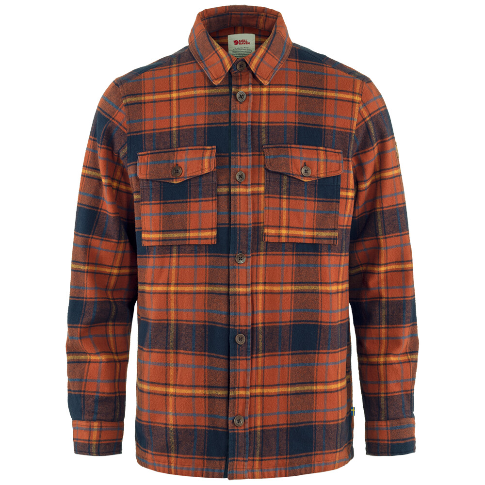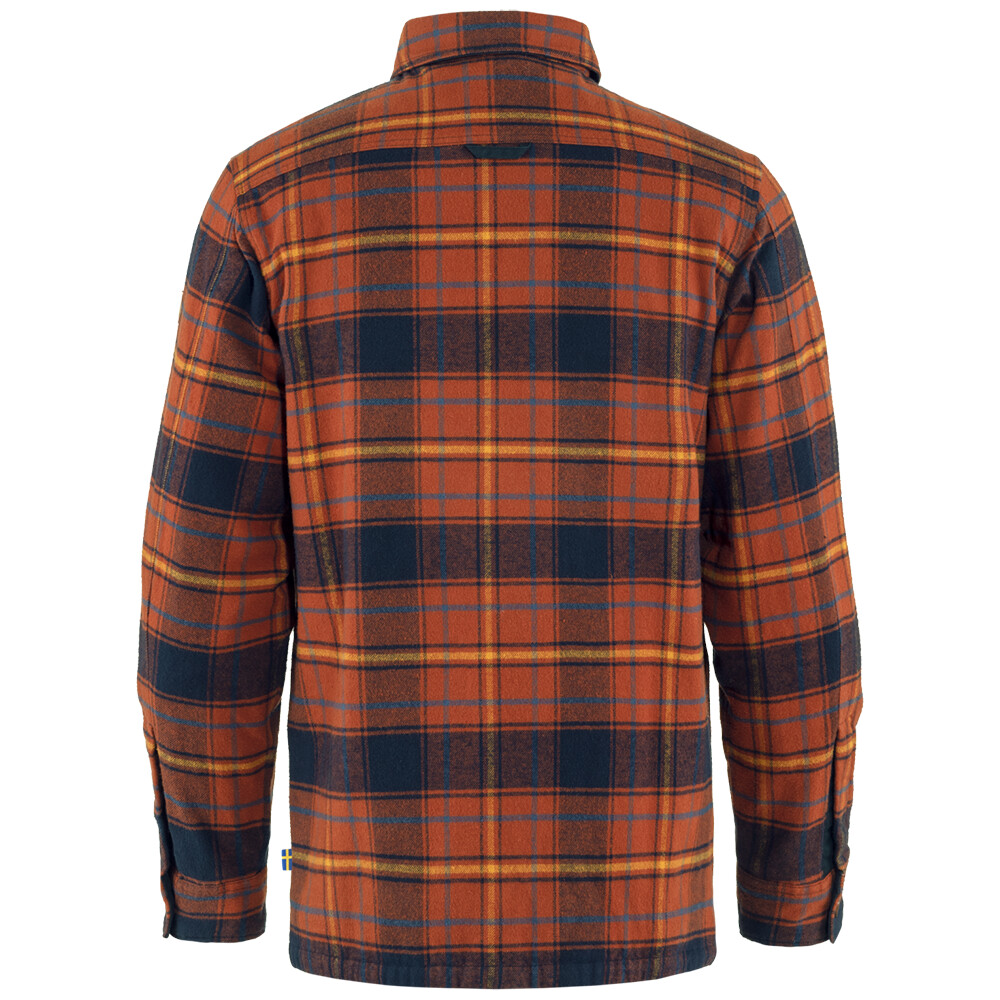 Cămașă bărbătească din flanel Övik Lite Padded Shirt de la compania suedeză Fjällräven izolată cu izolație sintetică. Este foarte confortabil, cald și fabricat din bumbac organic.
