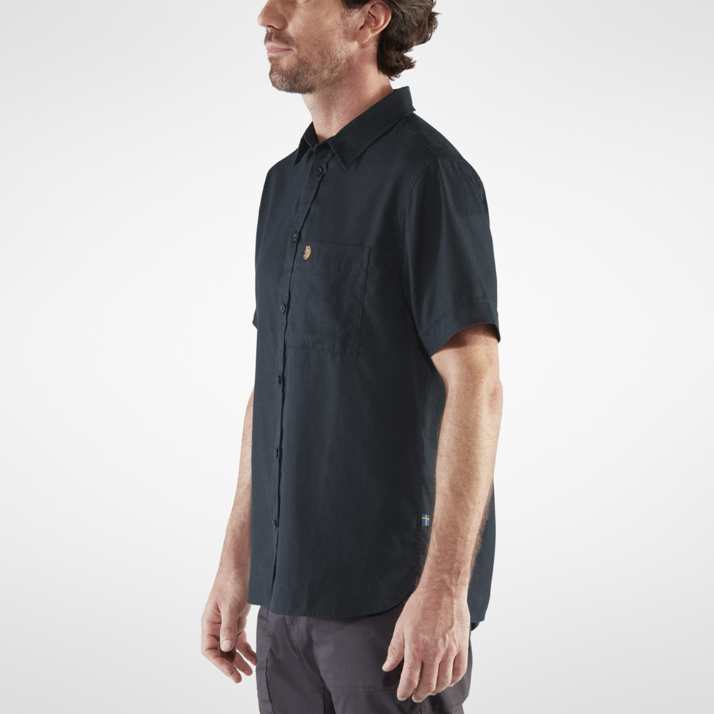 Cămașă confortabilă pentru bărbați cu mâneci scurte. Combinația de poliester reciclat și cânepă oferă o senzație răcoroasă și o bună respirabilitate. Ținuta ușor mai lejeră permite circulația naturală a aerului în jurul corpului. Această cămașă este partenerul ideal pentru călătoriile pe vreme caldă.