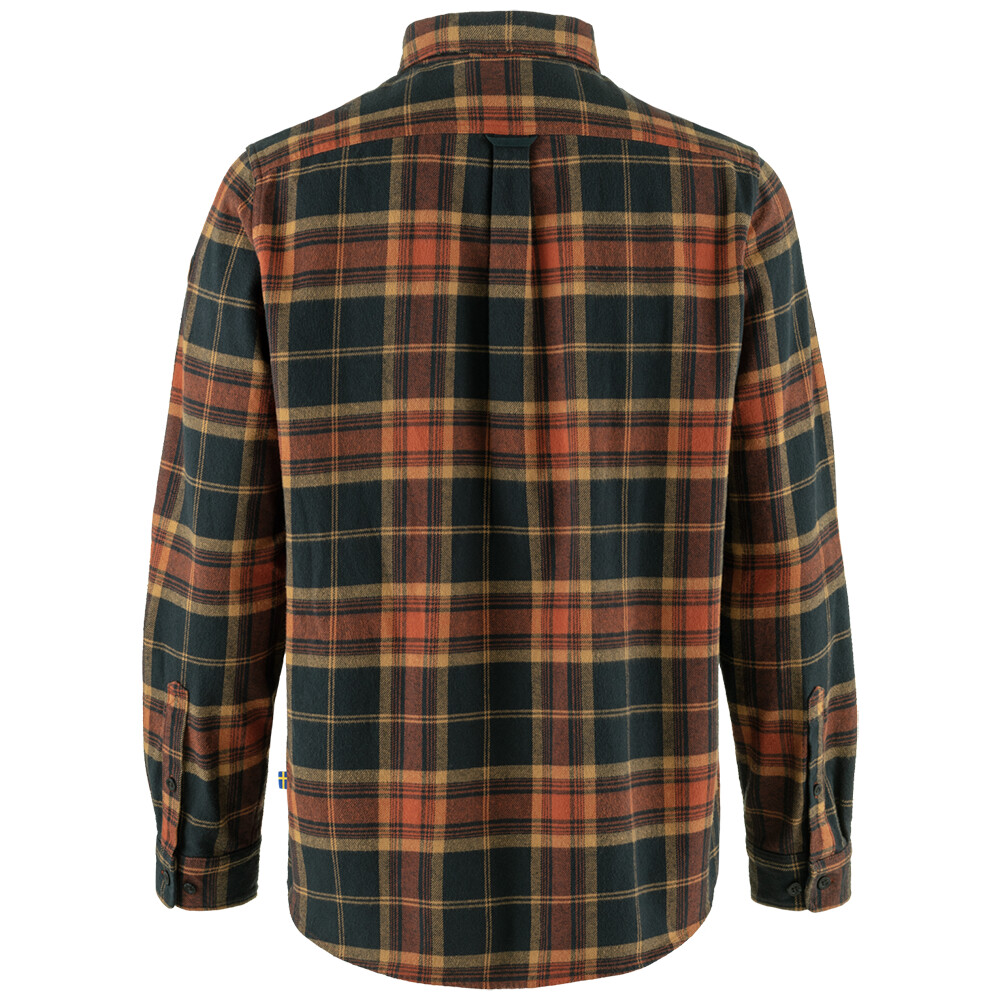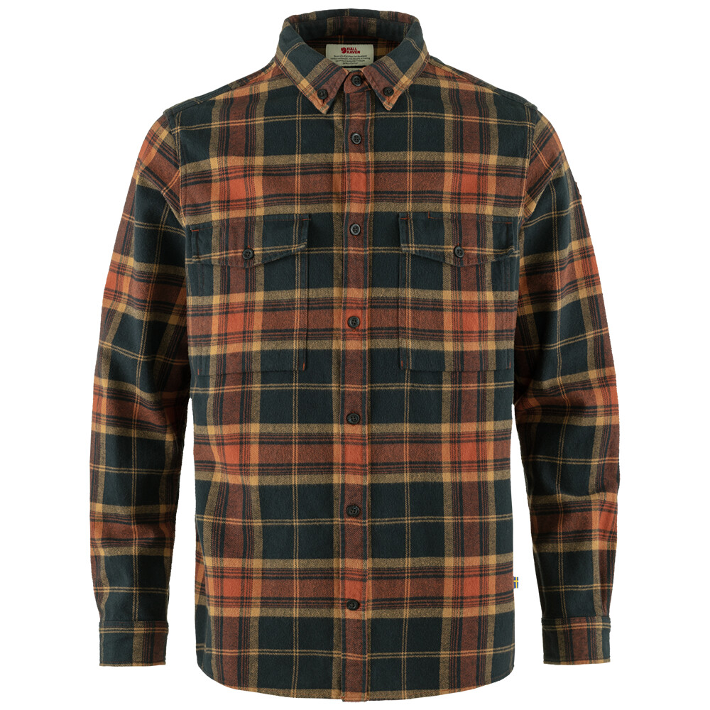 Cămașă de flanel pentru bărbați Fjällräven pentru muncă și timp liber. Material confortabil, mâneci răsucite, buzunare la piept cu nasturi și fantă pentru pixuri.