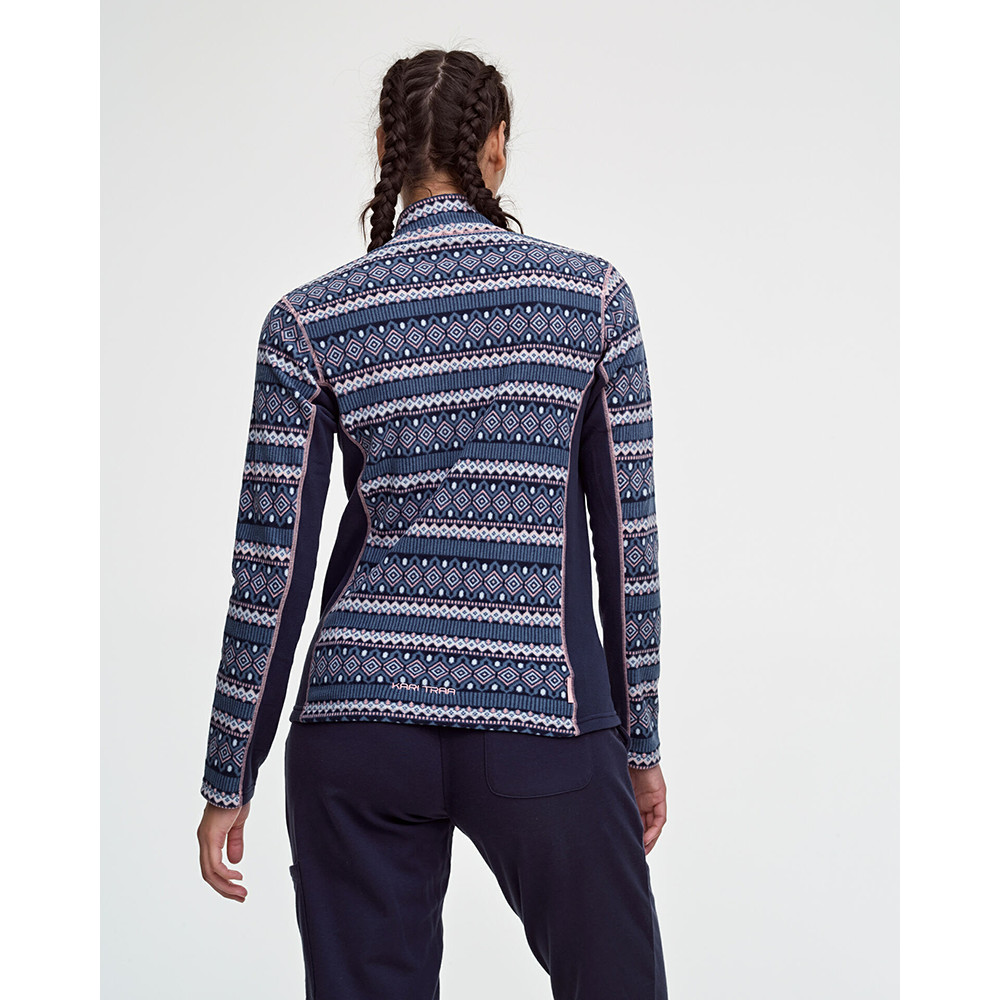 Hanoracul pentru femei Olgadin fleece moale de la Kari Traa vă va menține cald în mod fiabil în orice vreme. Poate fi purtat ca strat izolator sub o jachetă de top sau ca sweatshirt de sine stătător peste un tricou când se face frig afară. Hanoracul este flexibil, nu împiedică mișcarea și, în plus, materialul său cu uscare rapidă transportă umezeala departe de corp.