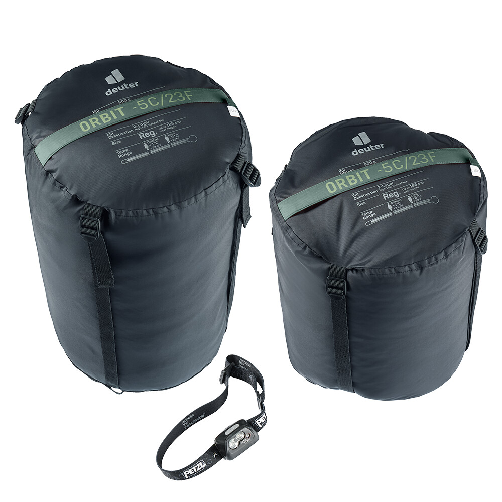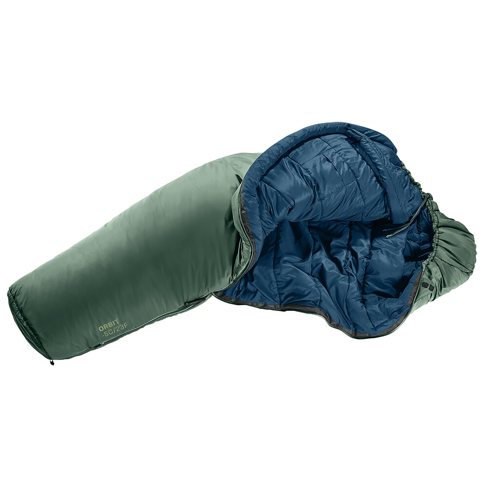 Orbit -5° este un sac de dormit de la deuter care este fabricat din poliester reciclat și vă va oferi un somn confortabil în nopțile răcoroase de primăvară și vară, în cort sau sub cort. Partea interioară a sacului de dormit este fabricată dintr-un amestec de bumbac, astfel încât sacul de dormit ruginește mai puțin atunci când vă mișcați și oferă senzația de a dormi într-un cearșaf clasic. Partea exterioară este o construcție fără cusături, ceea ce face ca sacul de dormit să fie mai cald (fără cusături care să explodeze) și să reziste mai bine la umiditate. În plus, vine într-o culoare verde închis, surdă, ceea ce îl face potrivit pentru iubitorii de natură, pescari și rucsacari care nu doresc să tulbure liniștea pădurii cu culori stridente.