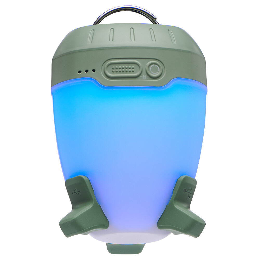 Lanterna de camping Orbiter de la Black Diamond vă oferă iluminare pentru orice ocazie - în cort, în timp ce vă bucurați de o seară cu prietenii sau chiar la un grătar. Utilizați cele două butoane de control pentru a regla luminozitatea dorită, de la iluminare slabă la lumină puternică. În plus, are și un mod de iluminare "curcubeu" pe întregul spectru de culori. Lanterna este reîncărcabilă prin portul USB-C și are, de asemenea, o funcție power bank. Acest lucru vă oferă opțiunea de a vă încărca telefonul mobil, ceasul sport și alte electronice mai mici.