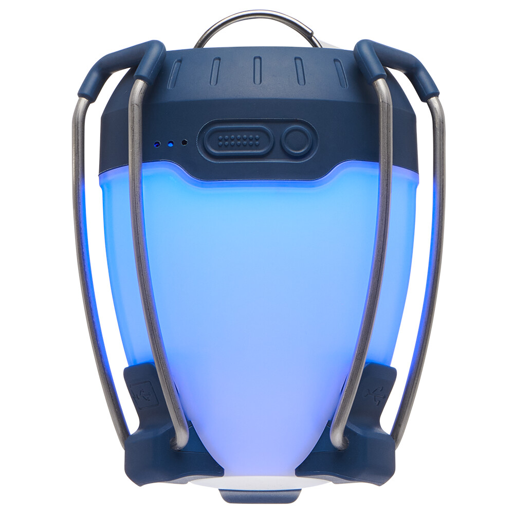 Lanterna de camping Orbiter de la Black Diamond vă oferă iluminare pentru orice ocazie - în cort, într-o seară cu prietenii sau chiar la un grătar. Utilizați cele două butoane de control pentru a regla luminozitatea dorită, de la iluminare slabă la lumină puternică. În plus, are și un mod de iluminare "curcubeu" pe întregul spectru de culori. Lanterna este reîncărcabilă prin portul USB-C și are, de asemenea, o funcție power bank. Acest lucru vă oferă opțiunea de a vă încărca telefonul mobil, ceasul sport și alte electronice mai mici.